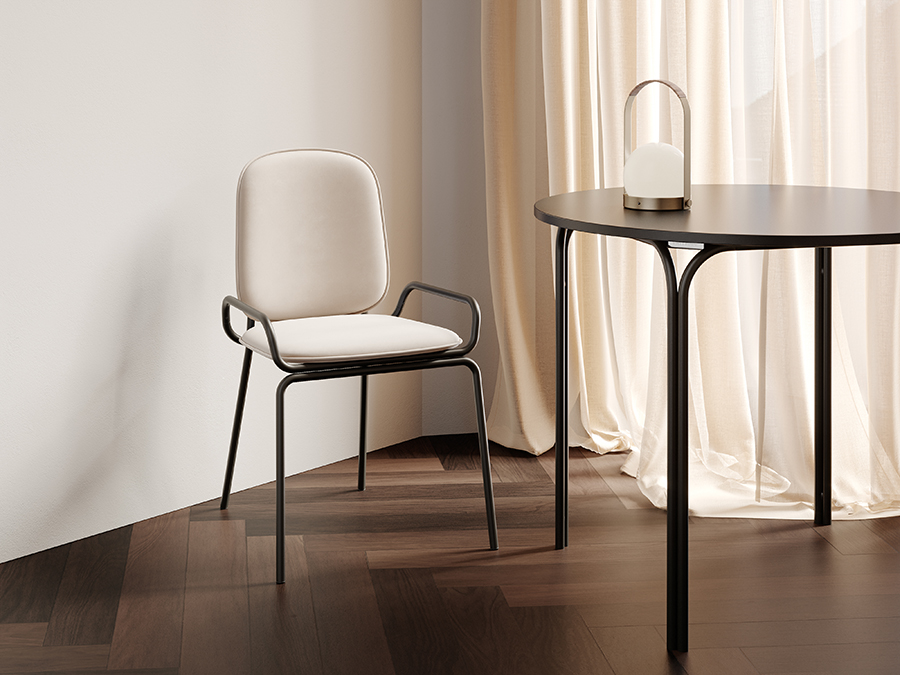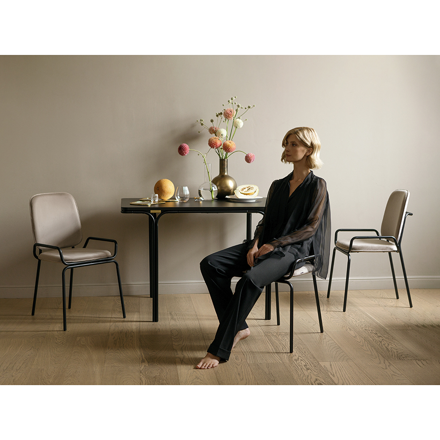 Стул Double Frame имеет удобную посадку за счет высокой спинки и широкого сиденья. Отсутствие острых углов создает легкий, гармоничный силуэт.