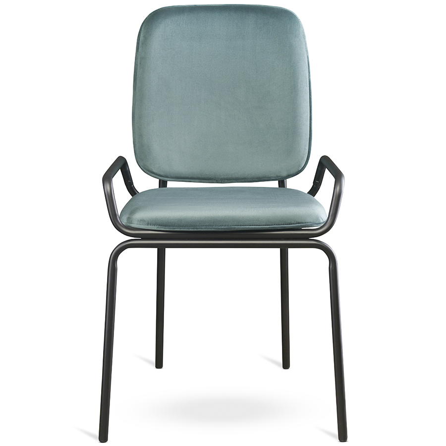 Стальной каркас с порошковым покрытием делает конструкцию прочной и надежной, а мягкий велюр с бархатистой текстурой обеспечивает тактильный комфорт. Ткань обивки обладает высокими показателями износостойкости. Используемый в качестве наполнителя пенополиуретан отличается комфортной плотностью и жесткостью.