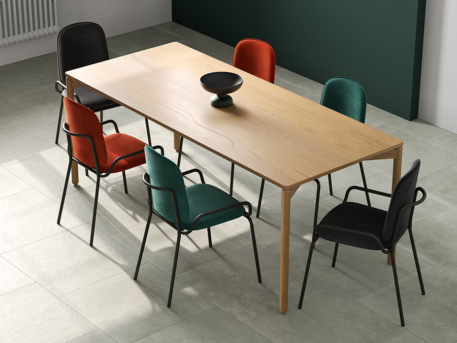 Стул Double Frame имеет удобную посадку за счет высокой спинки и широкого сиденья. Отсутствие острых углов создает легкий, гармоничный силуэт.