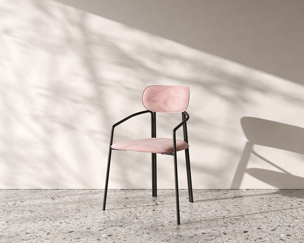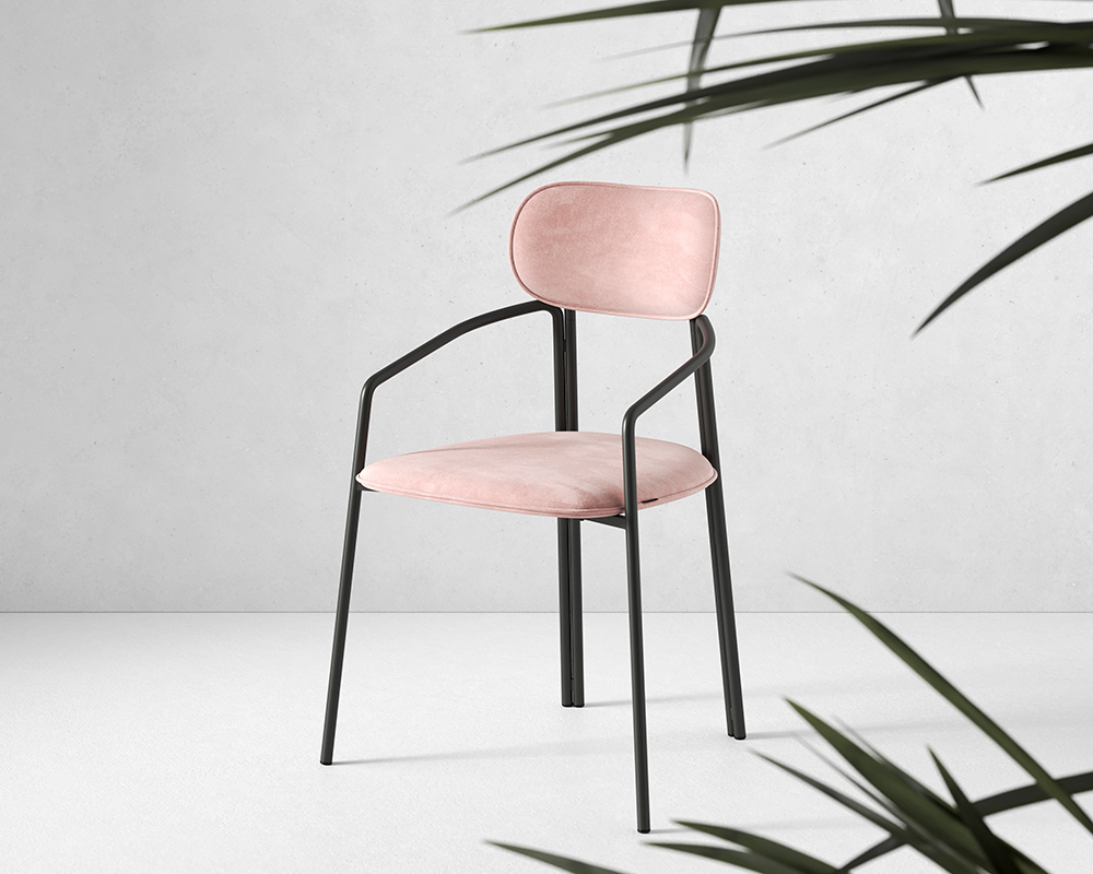 Стальное основание с порошковым покрытием делает конструкцию прочной и надежной, а мягкий велюр с бархатистой текстурой обеспечивает тактильный комфорт. Ткань обивки обладает высокими показателями износостойкости. Используемый пенополиуретан отличается комфортной плотностью и жесткостью.