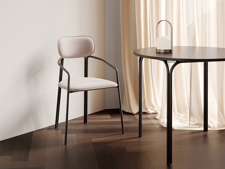 Каркас стула Round состоит из трех стремящихся вверх элементов, которые образуют округлый, словно окутывающий корпус. За счет отсутствия прямых углов создается легкий, гармоничный силуэт.