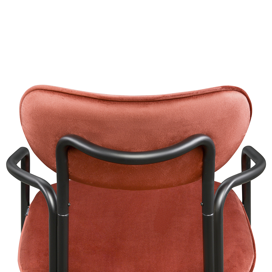 Стальное основание с порошковым покрытием делает конструкцию прочной и надежной, а мягкий велюр с бархатистой текстурой обеспечивает тактильный комфорт. Ткань обивки обладает высокими показателями износостойкости. Используемый пенополиуретан отличается комфортной плотностью и жесткостью.
