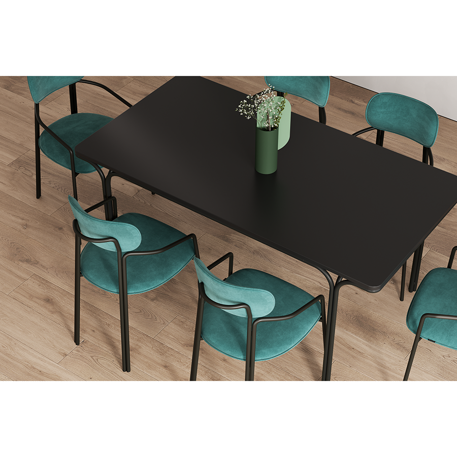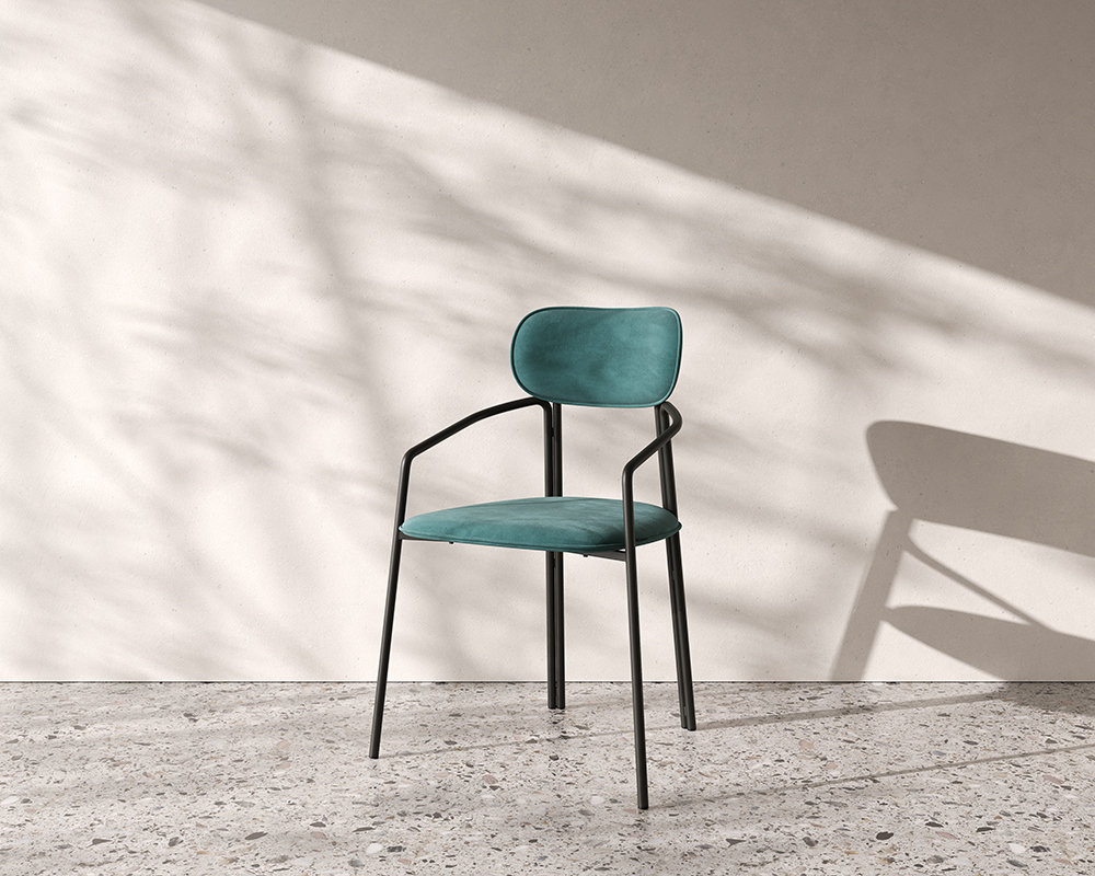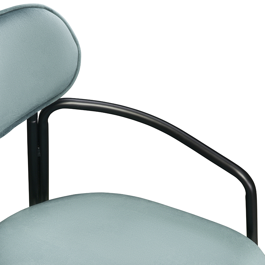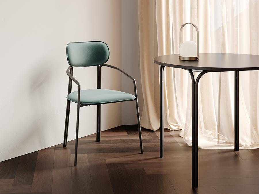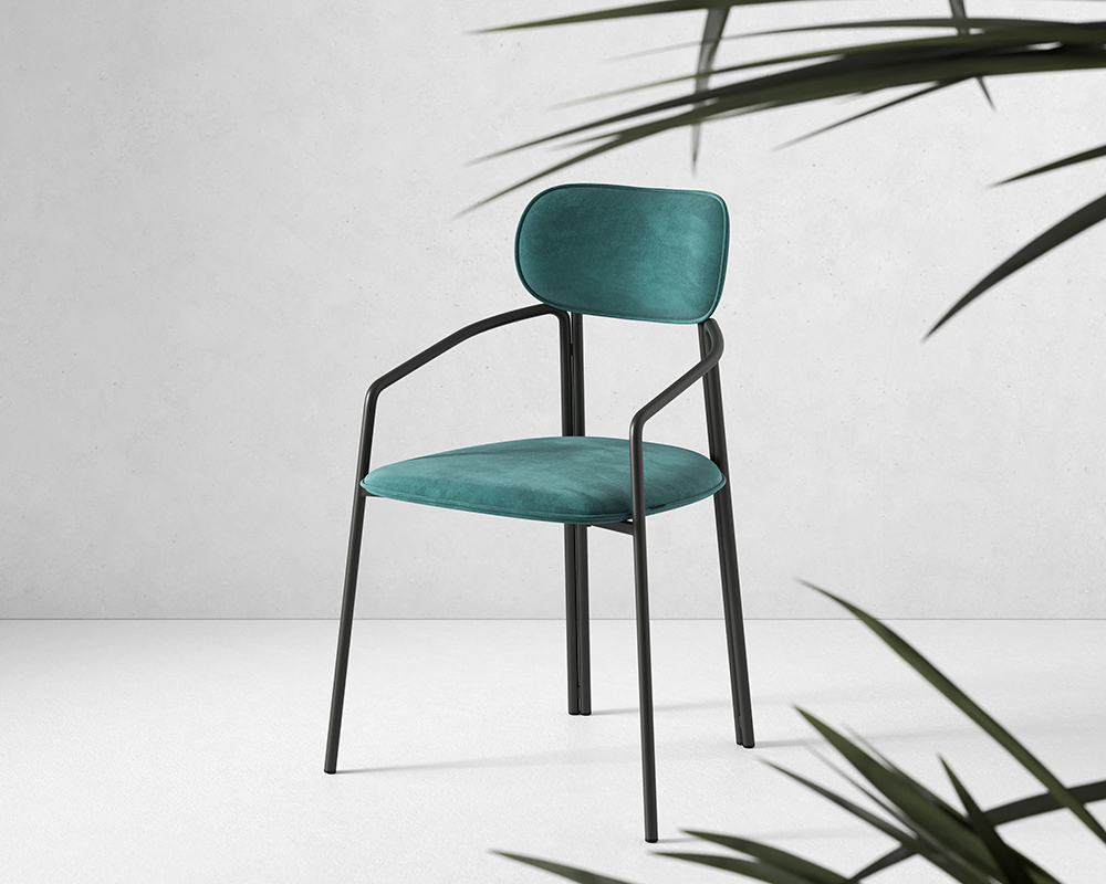 Стальное основание с порошковым покрытием делает конструкцию прочной и надежной, а мягкий велюр с бархатистой текстурой обеспечивает тактильный комфорт. Ткань обивки обладает высокими показателями износостойкости. Используемый пенополиуретан отличается комфортной плотностью и жесткостью.