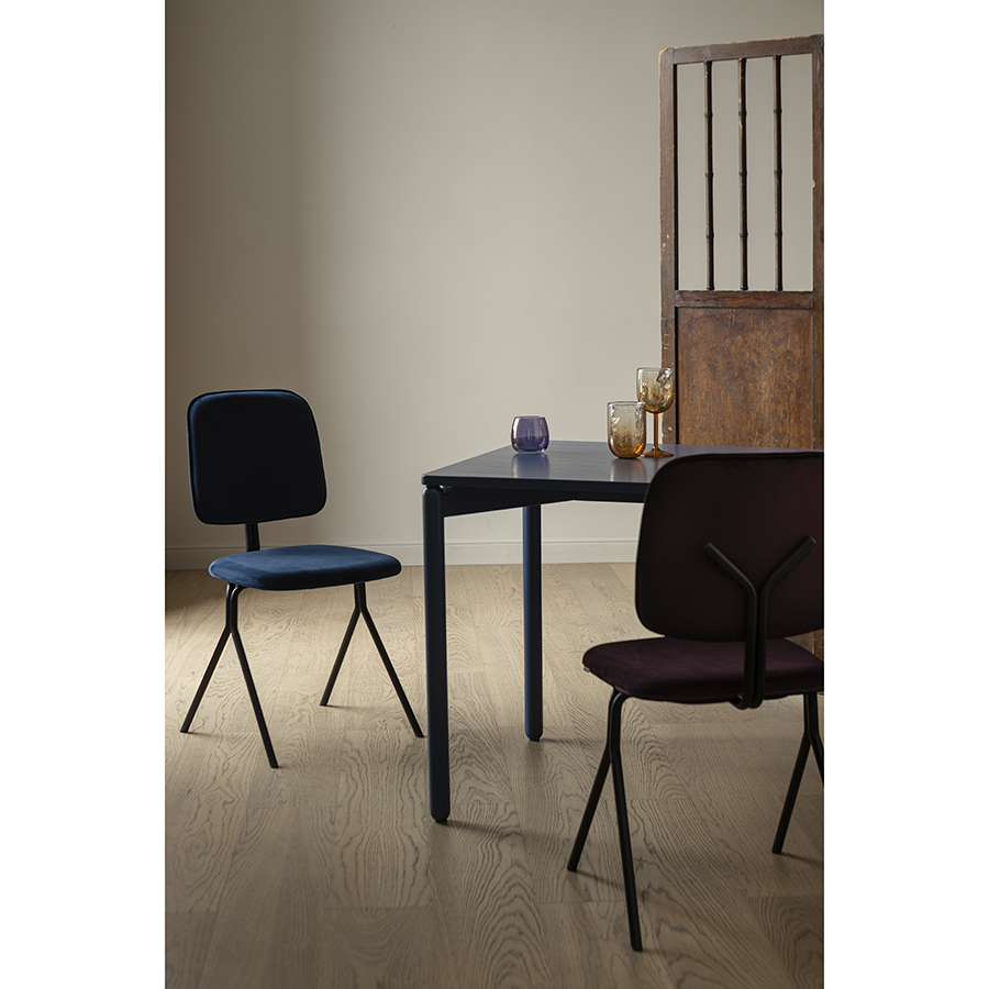 Стальной каркас с порошковым покрытием делает стул прочным и надежным, а мягкий велюр с бархатистой текстурой обеспечивает тактильный комфорт. Используемый в качестве наполнителя пенополиуретан отличается комфортной плотностью и жесткостью. Все материалы отвечают высоким стандартам практичности, долговечности и экологической безопасности.
