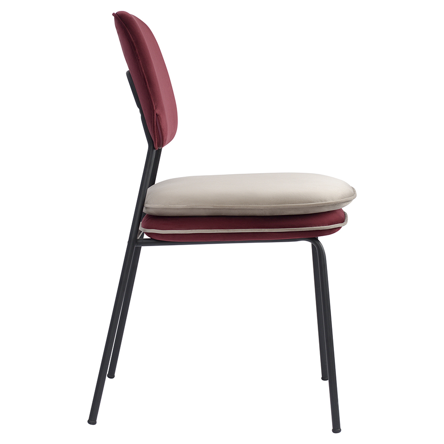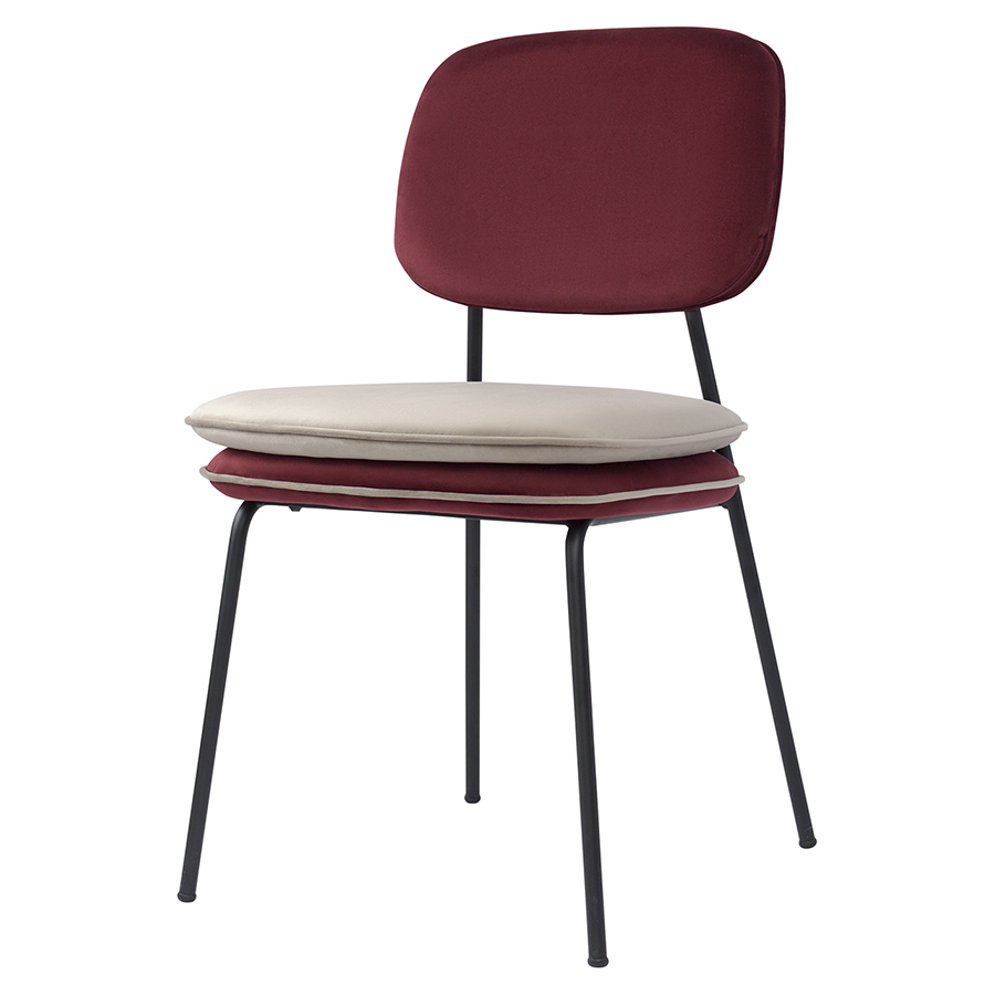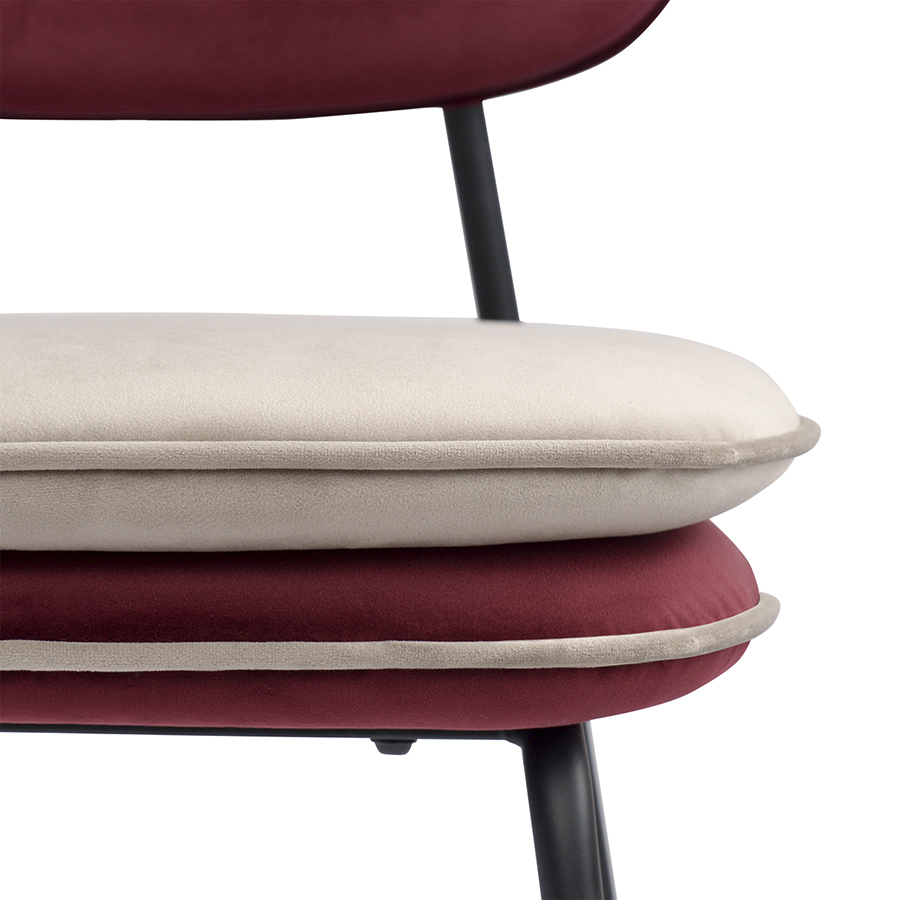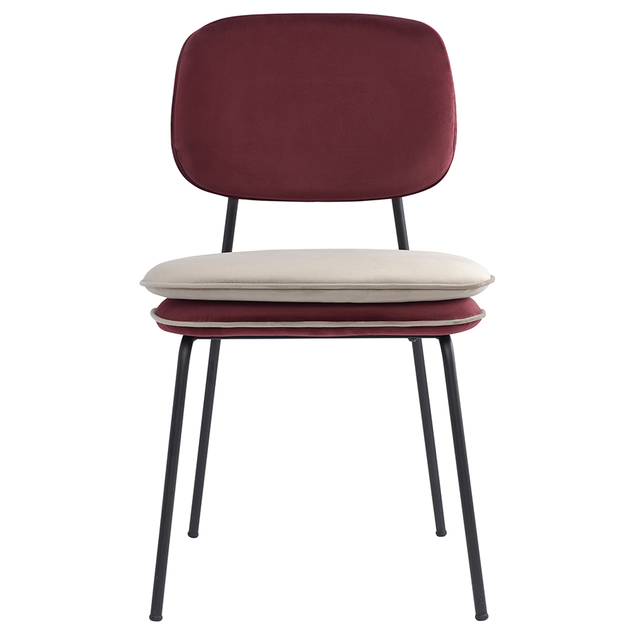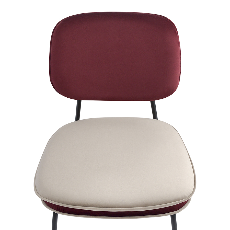 Стул с контрастным кантом Pea, велюр, бордовый/бежевый