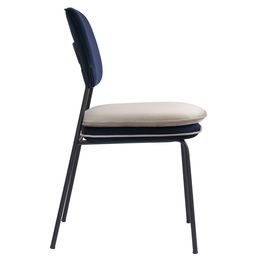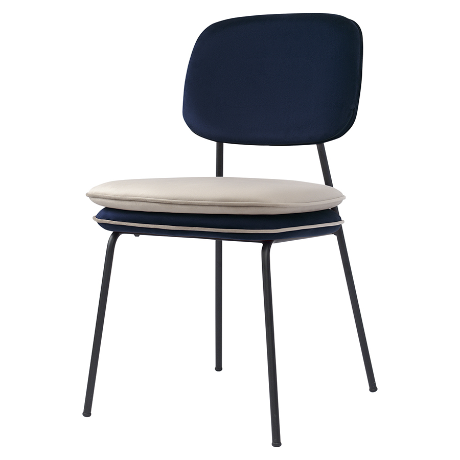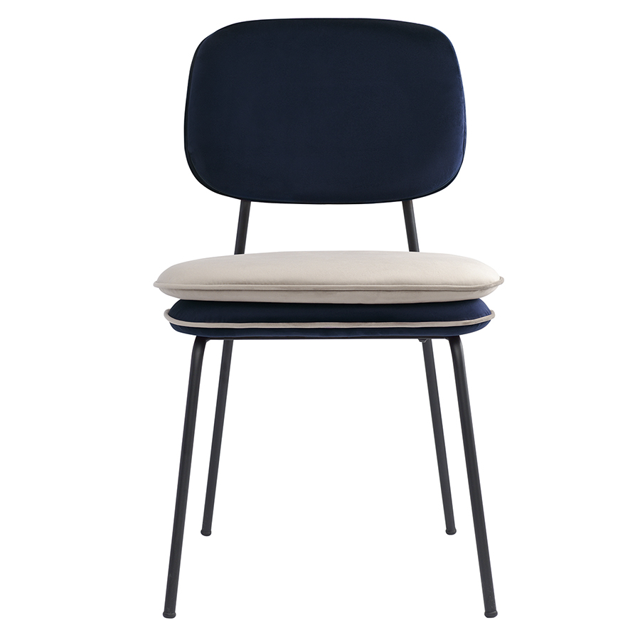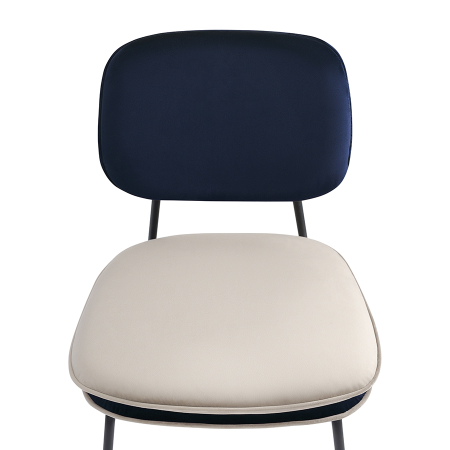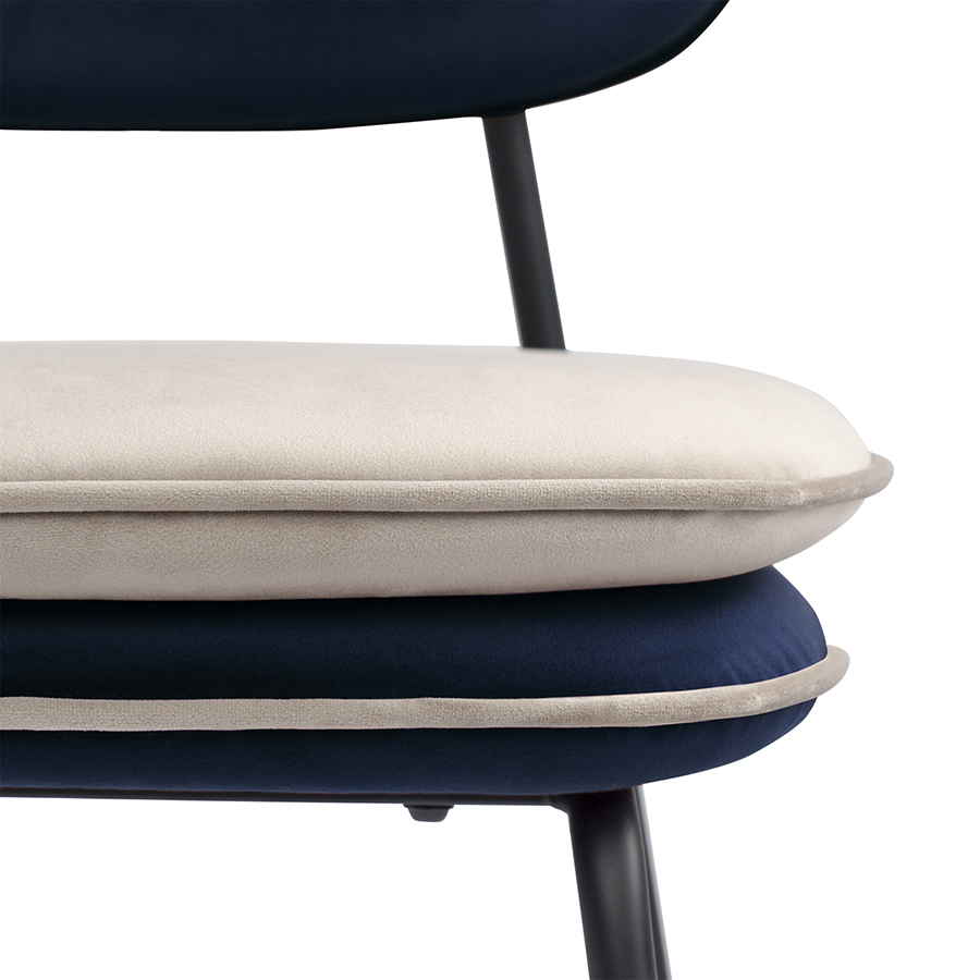 Стул с контрастным кантом Pea, велюр, темно-синий/бежевый