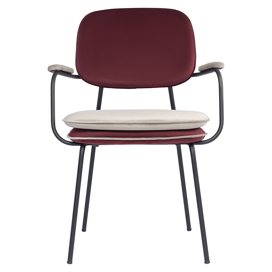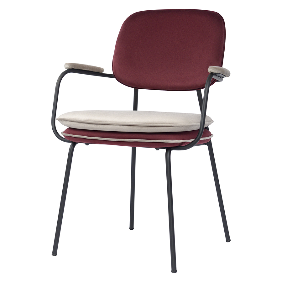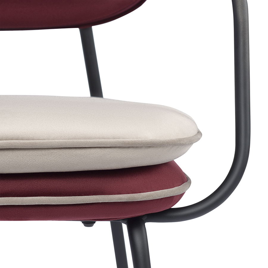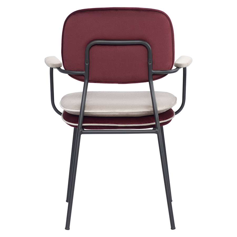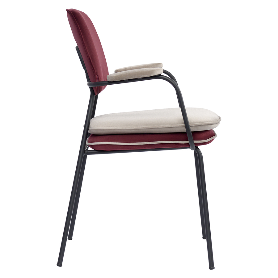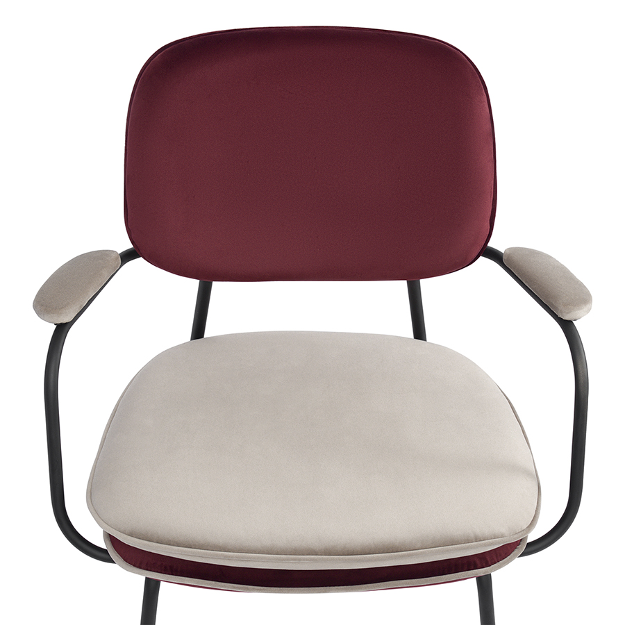 Стул с подлокотниками и контрастным кантом Pea, велюр, бордовый/бежевый
