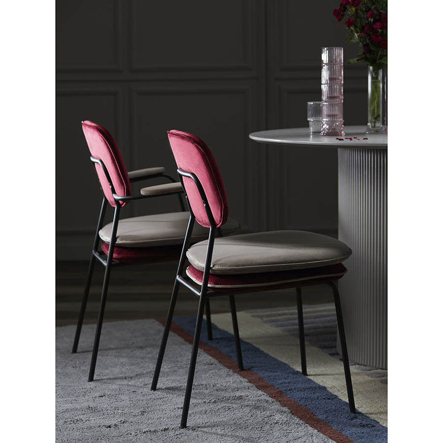 Стул Pea с подлокотниками, контрастным кантом и мягкой обивкой из бархатистого велюра станет настоящим украшением интерьера и идеальным выбором для ценителей качественной и элегантной мебели.