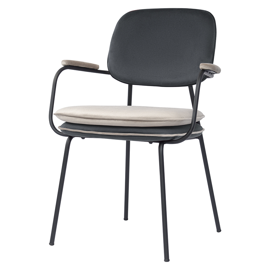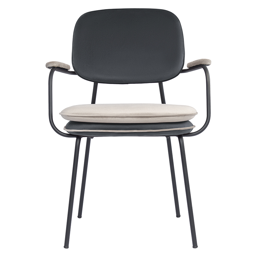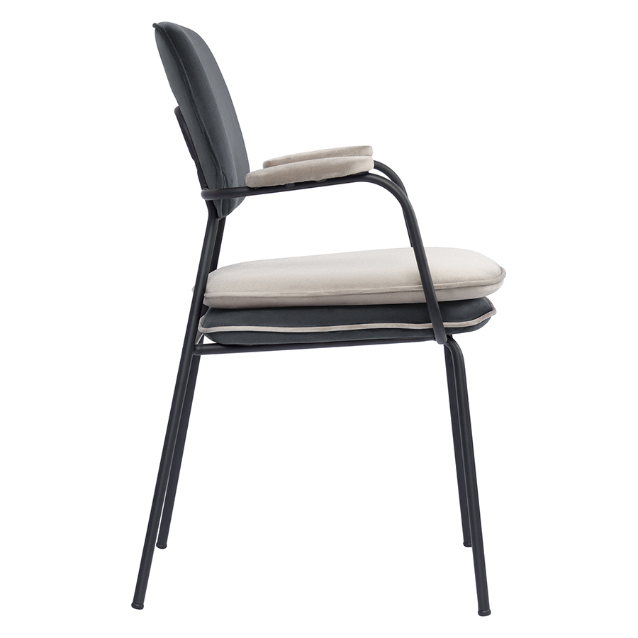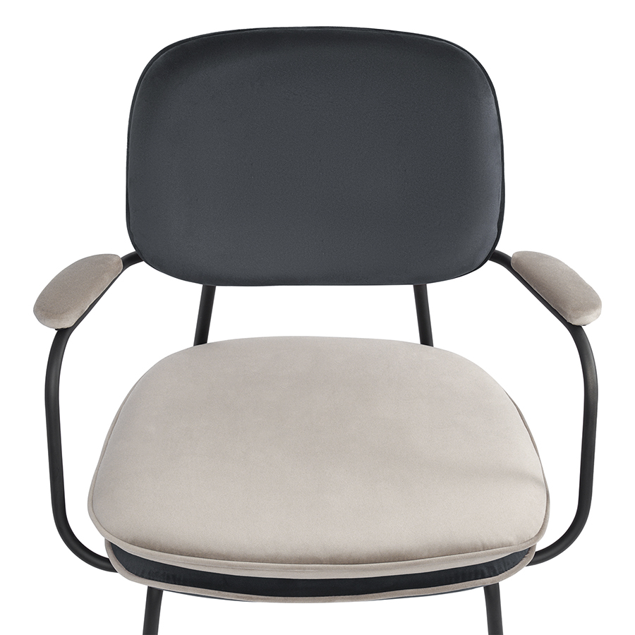 Стул с подлокотниками и контрастным кантом Pea, велюр, темно-серый/бежевый