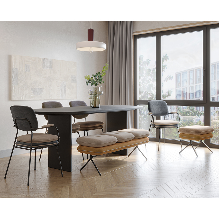 Стул Pea с подлокотниками, контрастным кантом и мягкой обивкой из бархатистого велюра станет настоящим украшением интерьера и идеальным выбором для ценителей качественной и элегантной мебели.