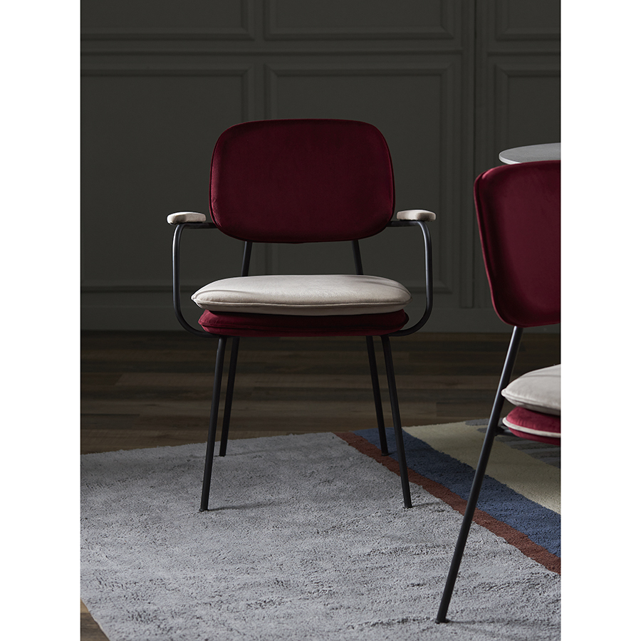 Стул с подлокотниками Pea, велюр, бордовый/бежевый