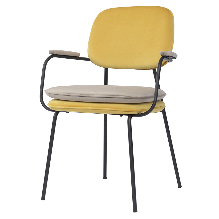 Стул с подлокотниками Pea, велюр, желтый/бежевый
