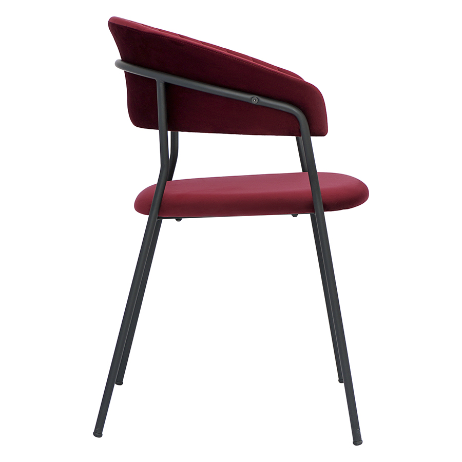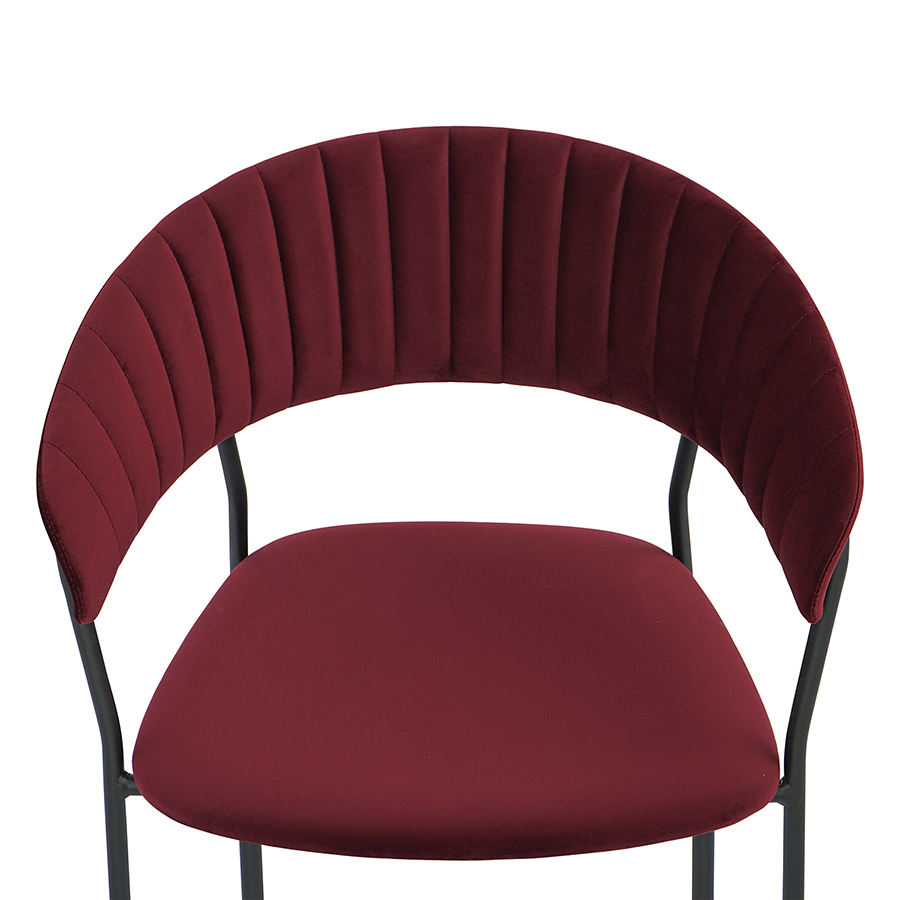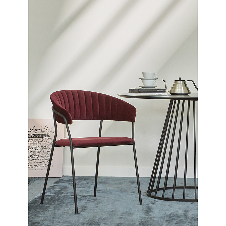 Мягкие сиденье и спинка, обтянутые велюром, создают комфорт во время отдыха на стуле. Материал с бархатистой фактурой обеспечивает красивый визуальный эффект и дарит приятные тактильные ощущения. Помимо высоких декоративных свойств ткань обивки характеризуется долговечностью и устойчивостью к износу. Железные ножки гарантируют конструкции прочность и надежность. Такой тандем материалов позволяет сочетать стул с различной отделкой и декором.