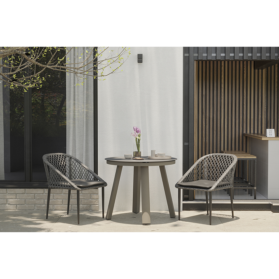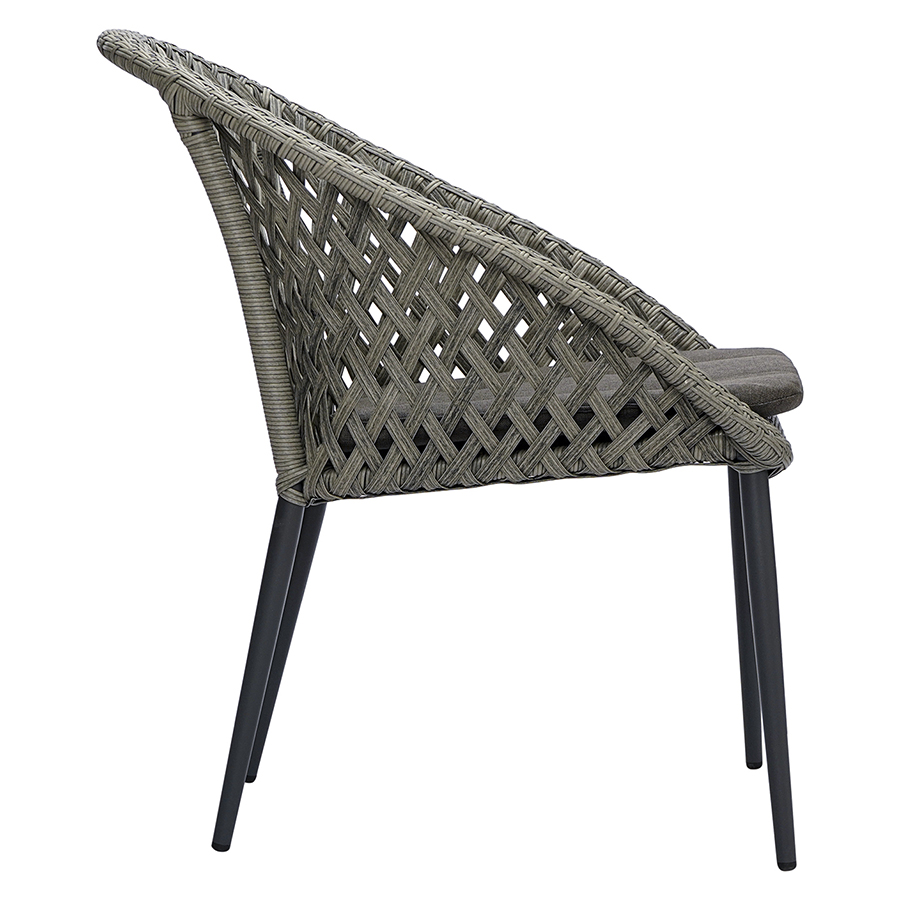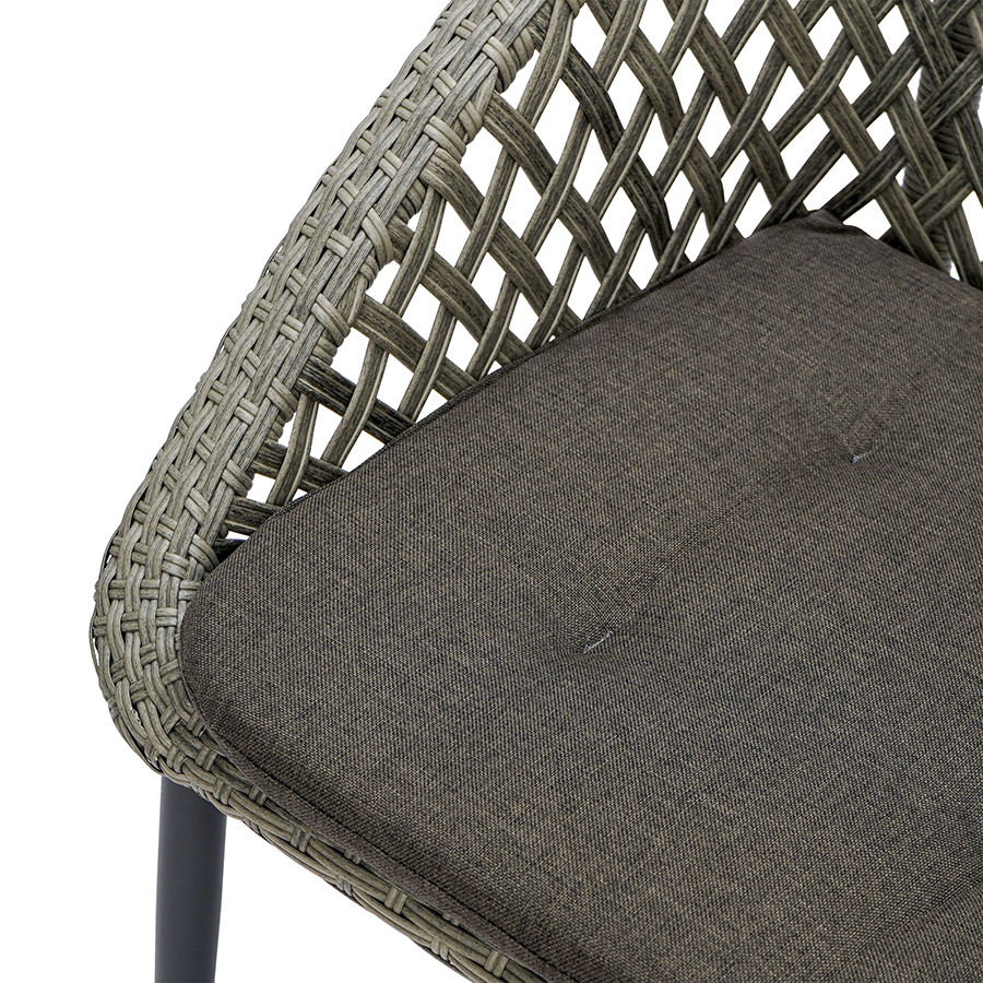 Материал: алюминий, полиэстер, пенополиуретан. Высота сиденья: 40 см. Ширина сиденья: 45,5 см. Глубина сиденья: 47 см. Высота спинки: 43 см. Ширина спинки: 47,5 см. Высота подлокотников: 15 см. Максимальная нагрузка: 120 кг. Цвет: серый.