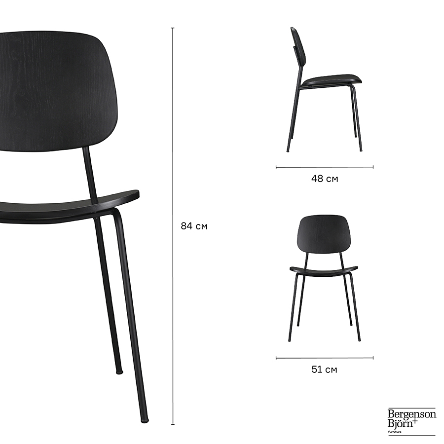 Материалы: фанера, железо. Размеры: 48x51x84 см. Высота сиденья: 45 см. Ширина сиденья: 45 см. Глубина сиденья: 40 см. Высота спинки: 41 см. Ширина спинки: 35 см. Максимальная нагрузка: 120 кг. Цвет: черный.