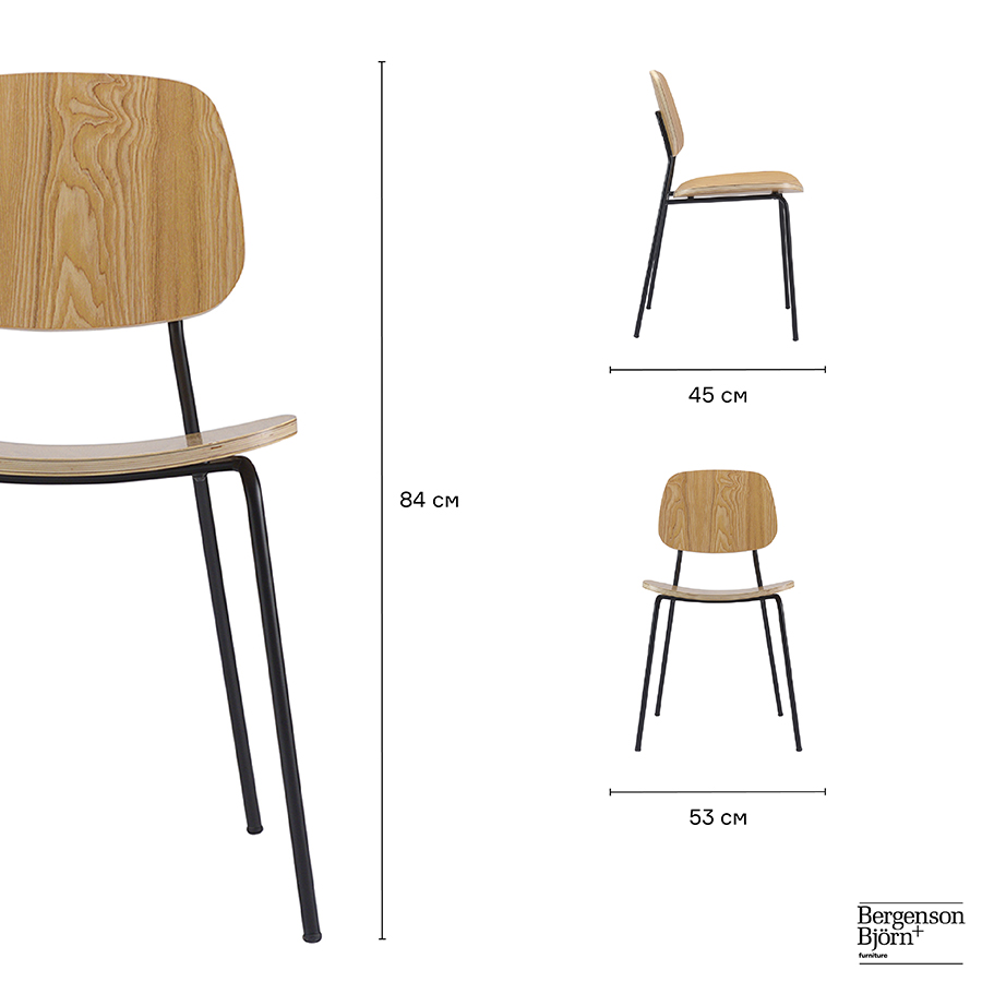 Материалы: фанера, железо. Размеры: 48x51x84 см. Высота сиденья: 45 см. Ширина сиденья: 45 см. Глубина сиденья: 40 см. Высота спинки: 41 см. Ширина спинки: 35 см. Максимальная нагрузка: 120 кг. Цвет: натуральное дерево.