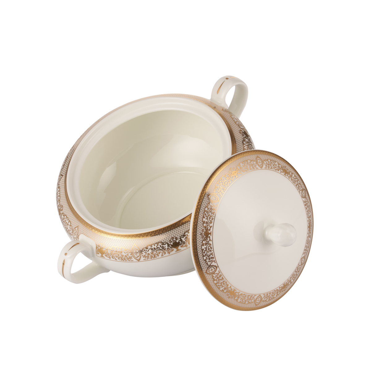 Супница GIPFEL ARGENTO 40986. Размер 3200мл. Супница предназначена для красивой сервировки первых блюд, из нее удобно и эстетично разливать суп по тарелкам. Цвет: белый с золотистым кантом. Материал: премиальный фарфор.
