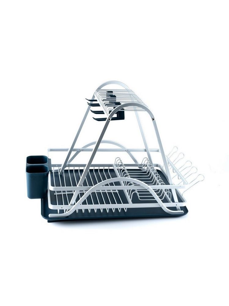 Сушилка для посуды GIPFEL 2413 с отделением для столовых приборов. Высота 41 см, длина 60 см, ширина 38 см. Материал: алюминий, пластик. Цвет поддона темно-синий.