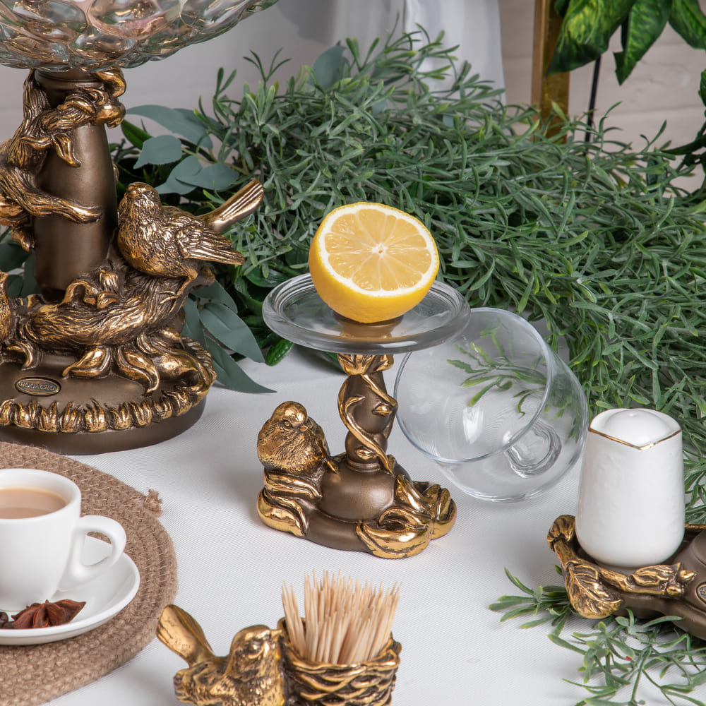 Благодаря прочности материалов лимонница Зарничка Лайм Бронза идеально подходит для ежедневного использования.Лимонница доставляется в отдельной крафтовой коробке, все детали изделия плотно уложены в пену для лучшей транспортировки. Вы можете отделить стеклянную часть от мраморной подставки для тщательного ухода в посудомоечной машине.Подставка лимонницы изготовлена из натурального коелгинского мрамора, отшлифована, а затем патинирована вручную.