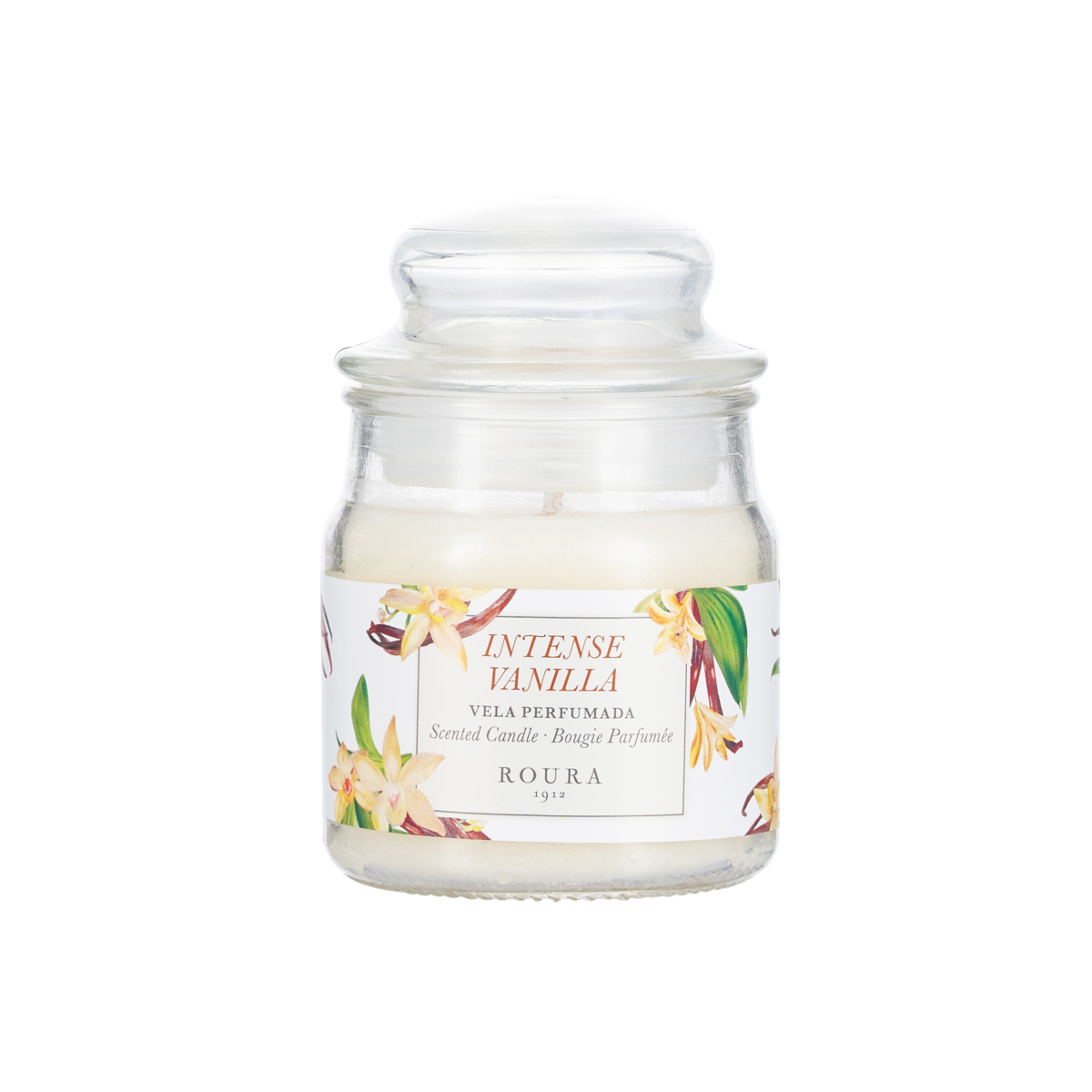 Свеча ароматическая Roura Intense Vanilla333440.170 в стеклянном фигурном стакане с крышкой. Свеча сделана из парафина и имеет аромат ванили.