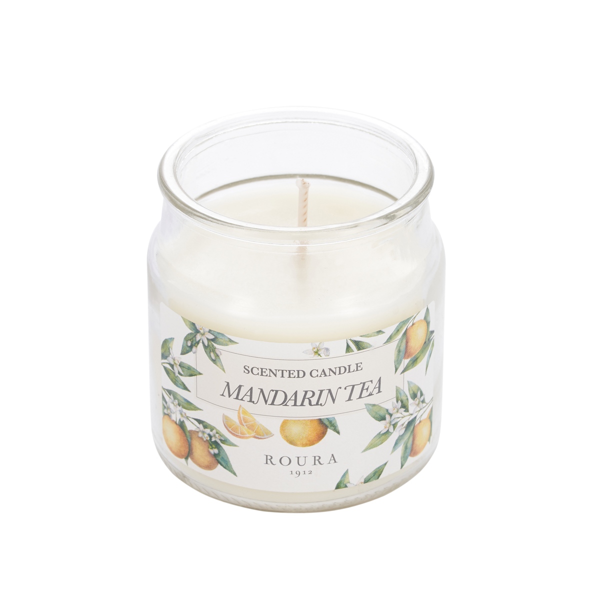 Свеча ароматическая Roura Mandarin Tea 333440.121 в стеклянном фигурном стакане с крышкой. Свеча сделана из парафина и имеет аромат мандаринового чая.