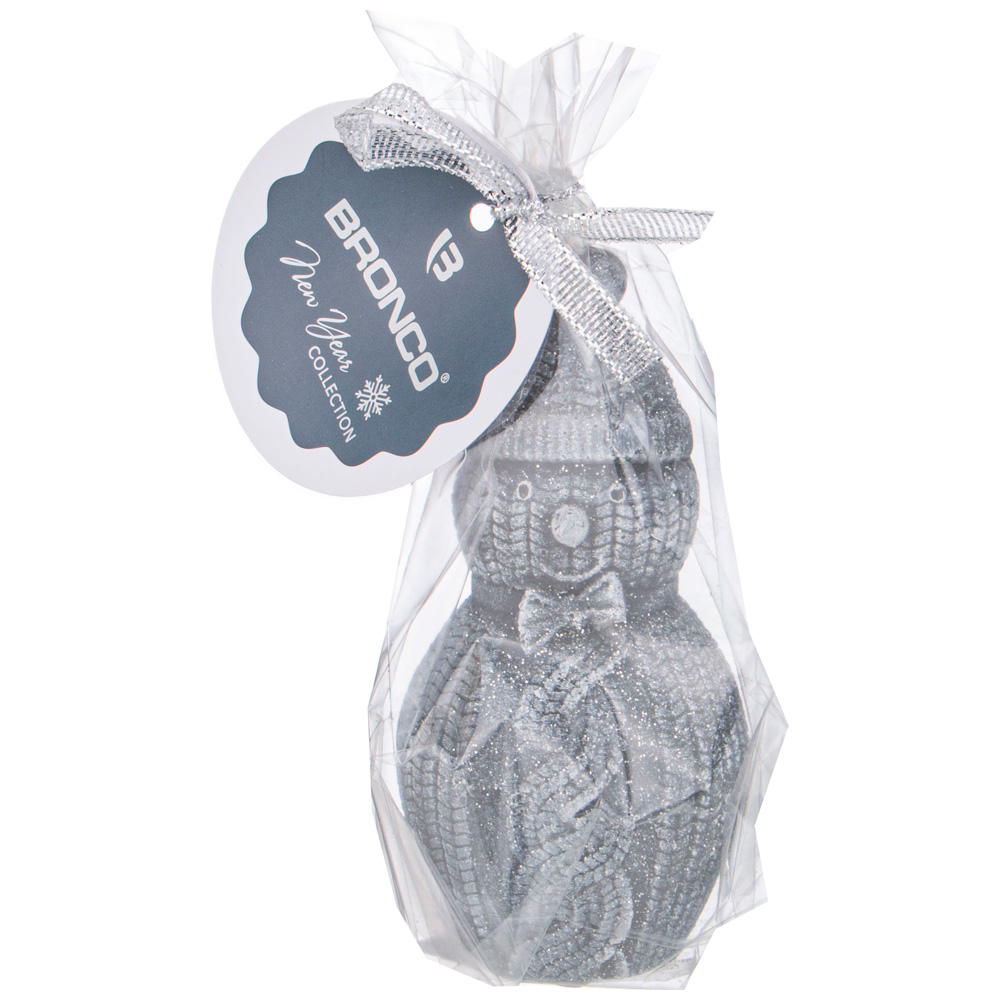 СВЕЧА BRONCO ФИГУРНАЯ "СНЕГОВИК" СЕРАЯ С БЛЕСКОМ 9*5,5 СМ