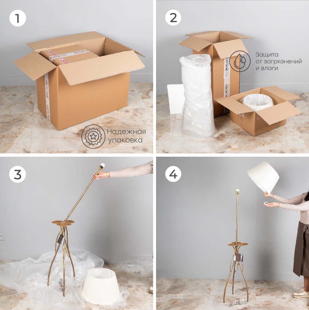 Светильник завернут в воздушно - пузырчатую пленку и надежно упакован в коробку из гофрированного картона, поэтому данный аксессуар для интерьера приедет к вам не поврежденным. Любите, чтобы интерьер был в едином стиле? Присмотритесь к продукции BOGACHO, которая будет гармонично сочетаться друг с другом. "