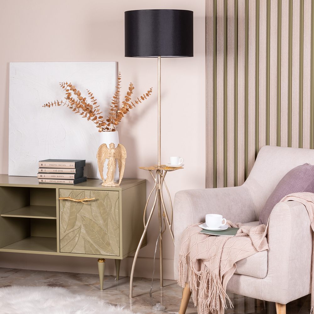 Светильник напольный торшер Нимфея с абажуром Винтаж-2 Черный