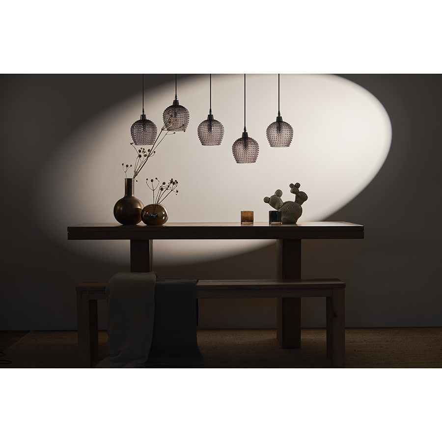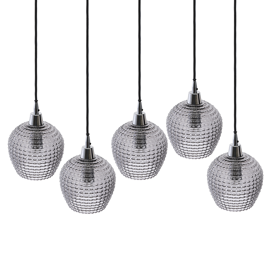 Материалы: стекло, железо. Размеры: 110х18х150 см. Цвет: серый. Длина провода: 1,1 м, 1,3 м, 1,5 м. Тип цоколя: 5хЕ27. Максимальная мощность ламп: 5х25 Вт. Степень пылевлагозащиты: IP20. Площадь освещения: 8,5 кв.м. Лампы в комплекте: нет.