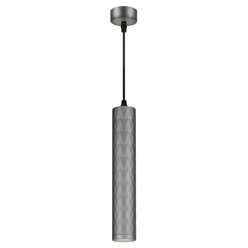 Подвесной светильник PL15 GR выполнен в фактурном рисунке "ромб". Притягивает и завораживает, создает новые грани красоты и изысканности. Корпус выполнен из металла, рисунок нанесен станком ЧПУ и покрыт устойчивой порошковой краской, которая после нанесения запекается в печи при температуре 210°С. Светильник предназначен под лампу MR-16 с цоколем GU10, напряжение питания ~230В 50/60Гц, материал металл, цвет светильника графит, размер D55хH300мм, длина провода 1200 мм, максимальная мощность лампы 12Вт, степень защиты IP20