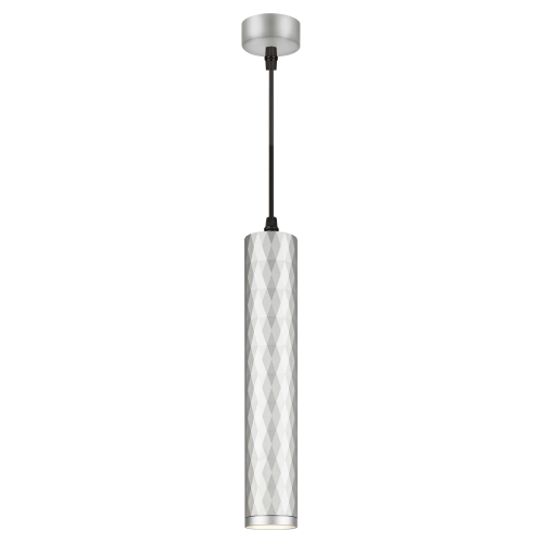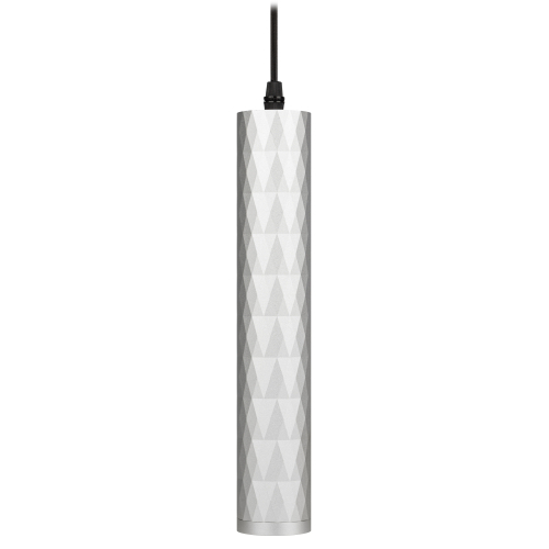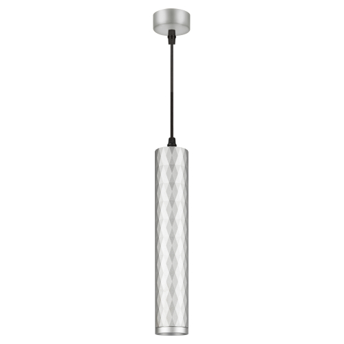 Подвесной светильник PL15 SL выполнен в фактурном рисунке "ромб". Притягивает и завораживает, создает новые грани красоты и изысканности. Корпус выполнен из металла, рисунок нанесен станком ЧПУ и покрыт устойчивой порошковой краской, которая после нанесения запекается в печи при температуре 210°С. Светильник предназначен под лампу MR-16 с цоколем GU10, напряжение питания ~230В 50/60Гц, материал металл, цвет светильника серебро, размер D55хH300мм, длина провода 1200 мм, максимальная мощность лампы 12Вт, степень защиты IP20