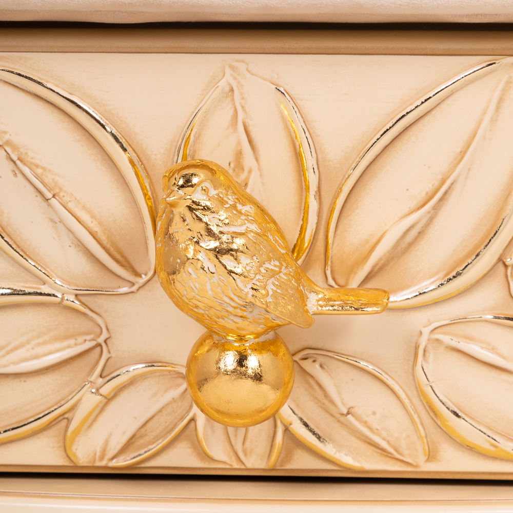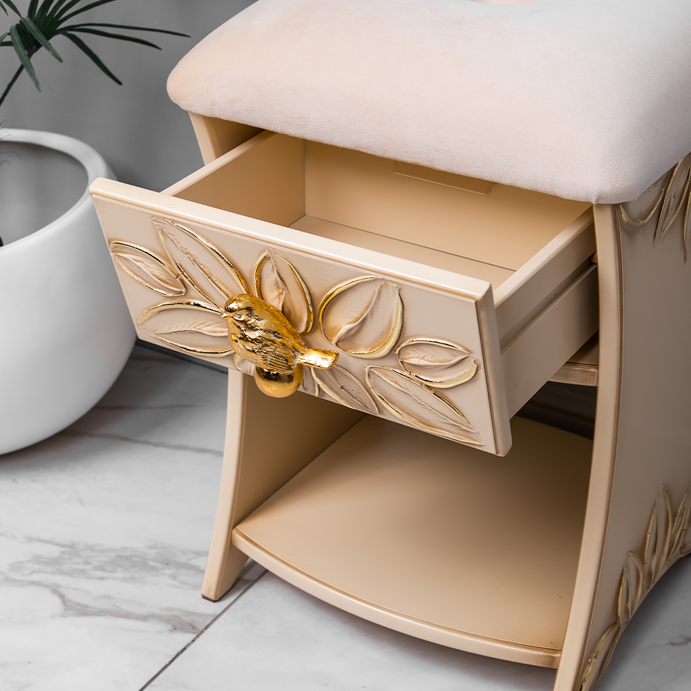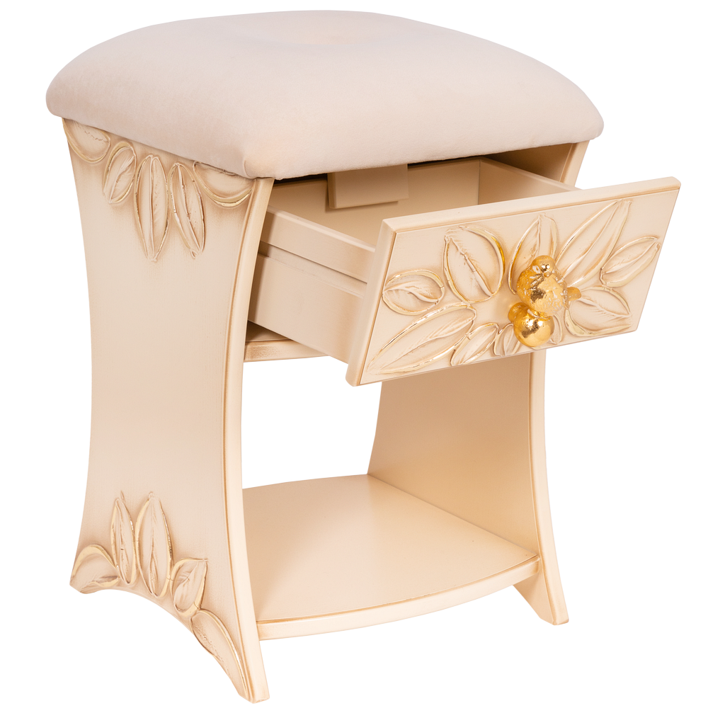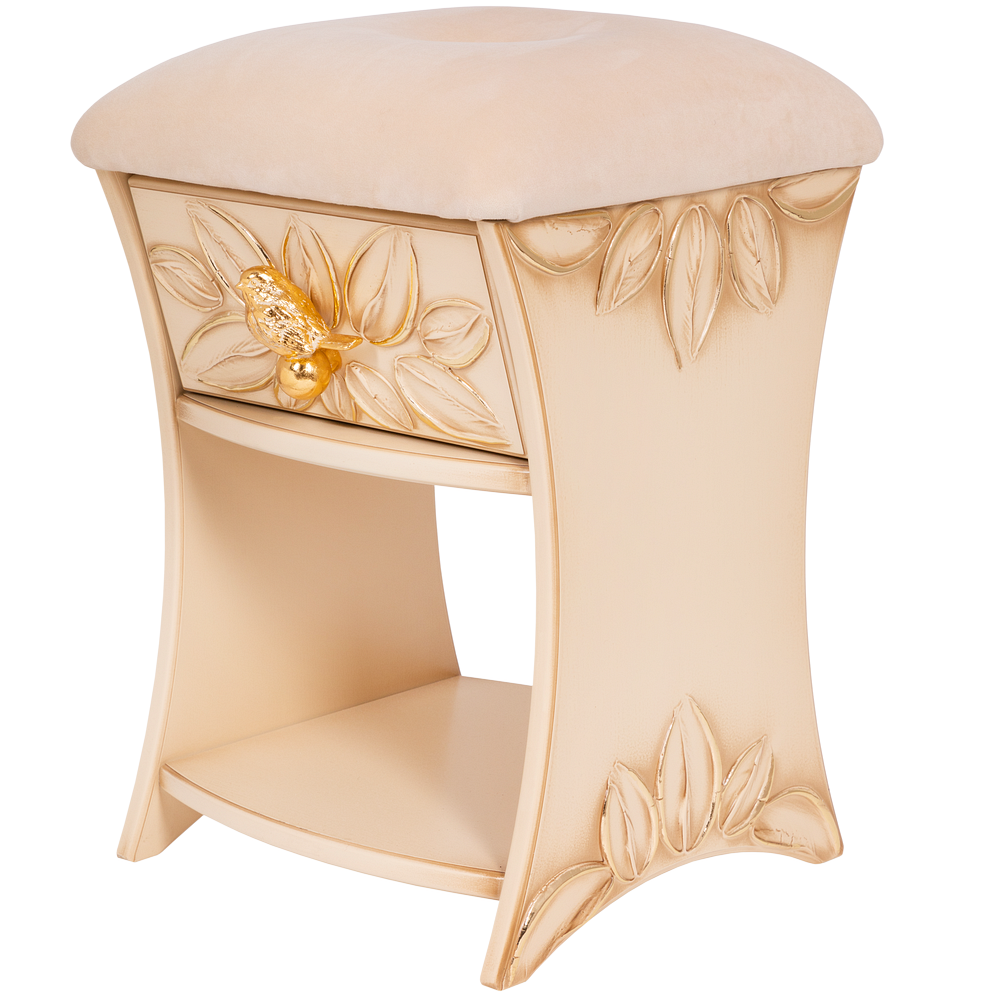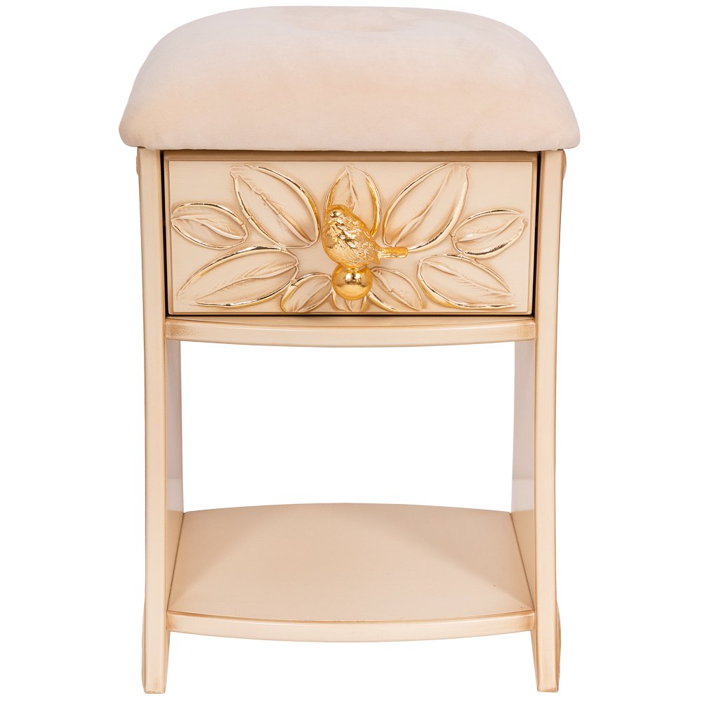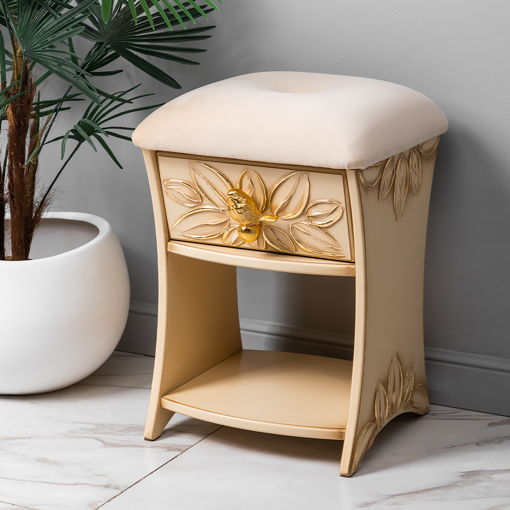 Каркас табурета Зарничка Нест Айвори выполнен из МДФ и обит искусственной кожей. Наполнителем служит холлофайбер. Изделие будет отлично смотреться в холле, гардеробной или спальне. Индивидуализируйте дизайн своего дома вместе с роскошными табуретами от BOGACHO.