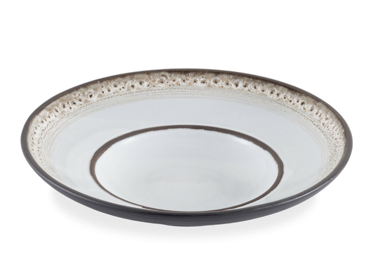 Серия тарелок Meringue изготовлена из высококачественной керамики и выделяется коричневой окантовкой по краям тарелок на общем белом фоне. Данная модель предназначается для сервировки пасты, ее диаметр 26 см.