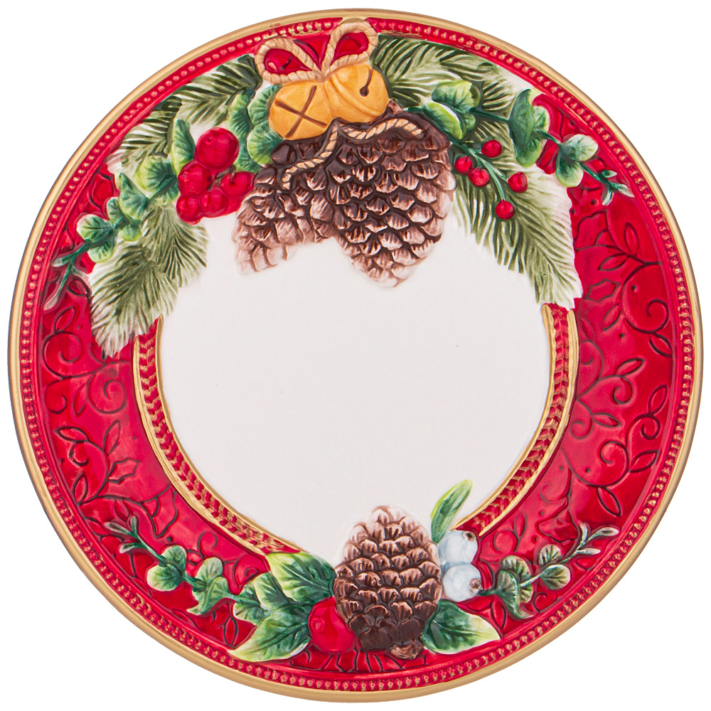 Тарелка Лефард новогодняя 26 см коллекция ""Шишки"". Керамическая тарелка — это идеальный элемент для создания новогодней атмосферы на вашем праздничном столе.