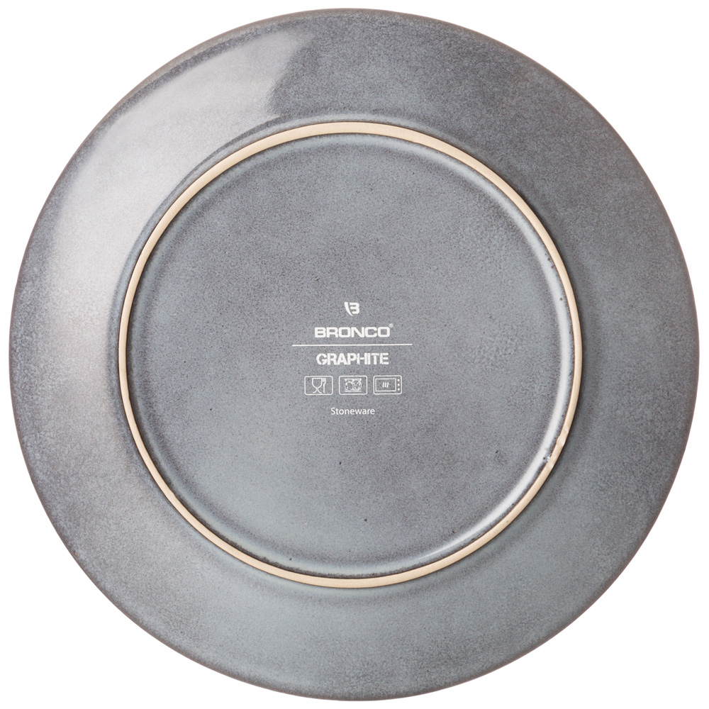 Коллекция ТМ BRONCO Graphite глубокого серого цвета с великолепным графическим подглазурным рисунком и стильной удобной формы оптимальных размеров. Все изделия выполнены из высокотемпературной каменной керамики и обожжены при температуре от 1100 до 1400 градусов. При такой температуре вода и воздух из глиняной массы полностью испаряются и изделия становятся легче, плотнее, крепче, приближаясь по своим характеристикам к фарфору. Современные рестораторы выбирают каменную керамику именно из-за её прочности и стойкости к перепадам температур. Поверхность изделий покрыта глянцевой реактивной глазурью. Изделия не впитывают вкусы и запахи продуктов, хорошо сохраняют тепло и холод. Они легки в уходе, вызывают приятные тактильные ощущения, длительное время сохраняют первоначальный внешний вид. Каменную керамику можно мыть в посудомоечной машине, использовать в микроволновой печи.