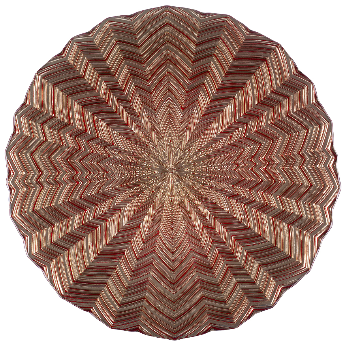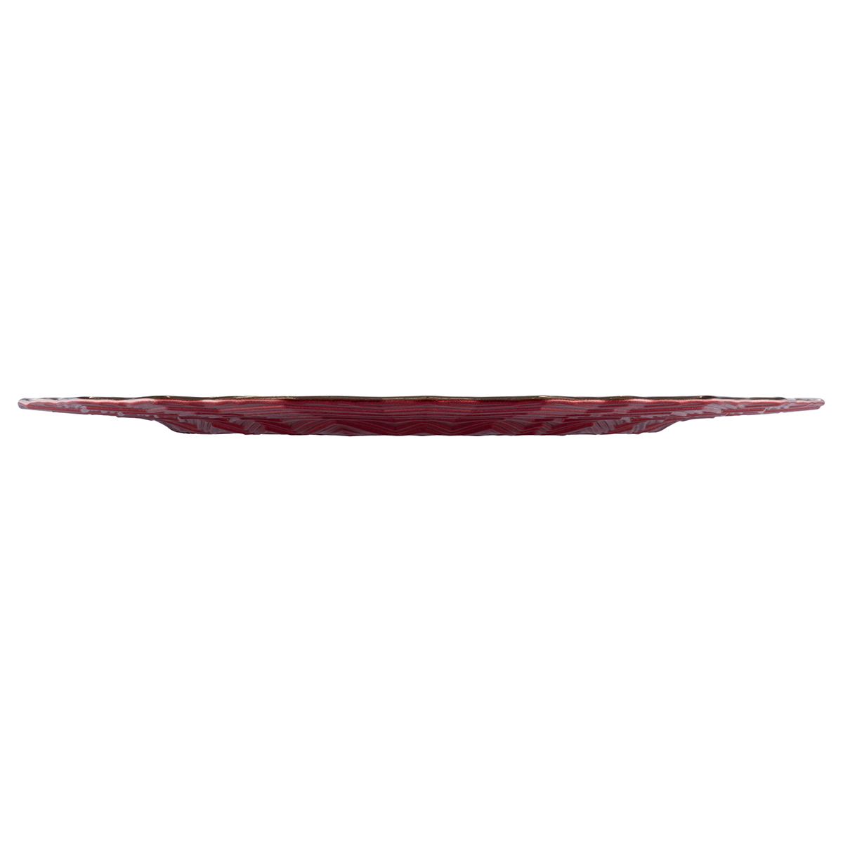 Тарелка сервировочная Gipfel Astrid 43217 29 см. Изготовлена из стекла ручной работы. Тарелка с абстрактным декором в оттенках золотого и брусничного цвета, придающим изделию 3D эффект.