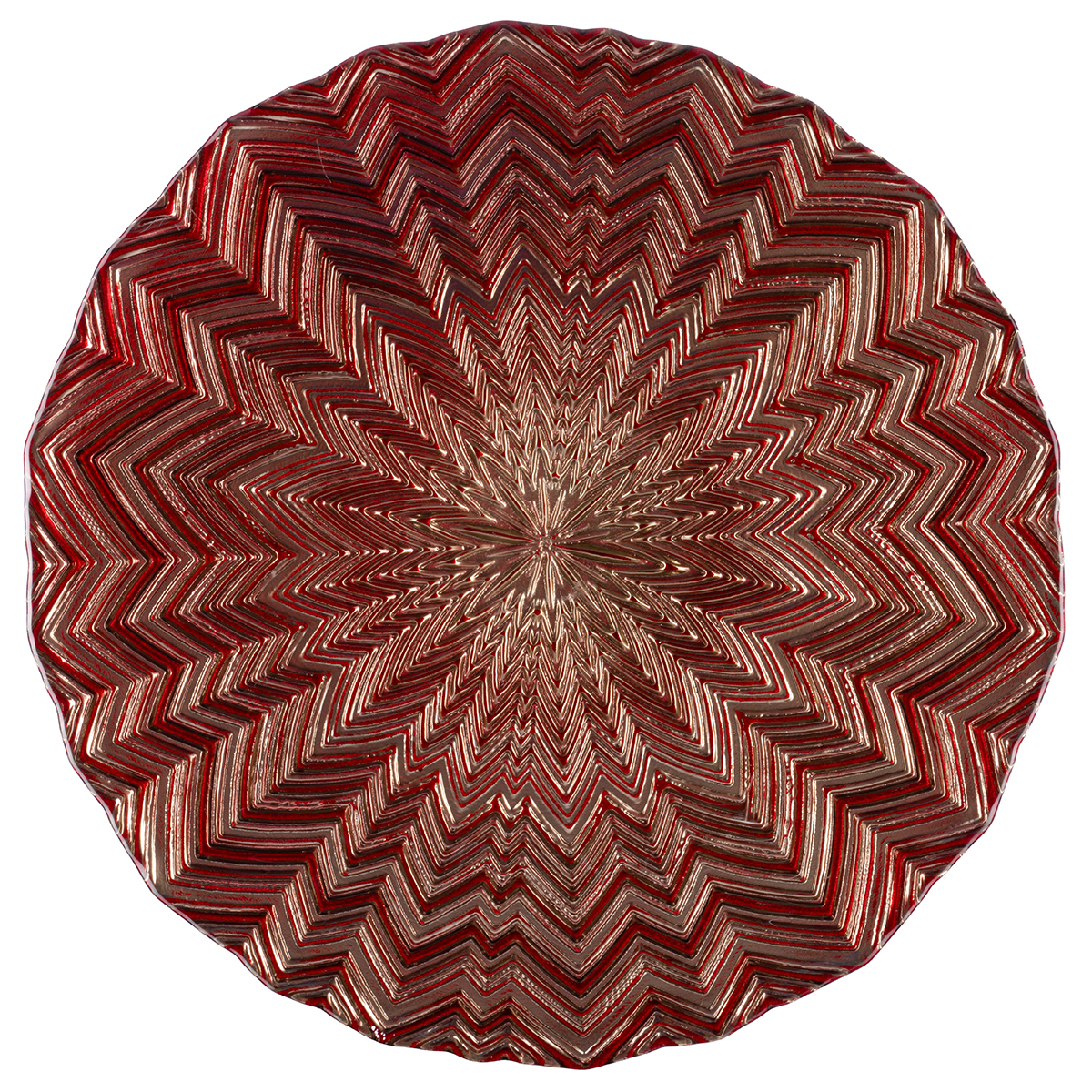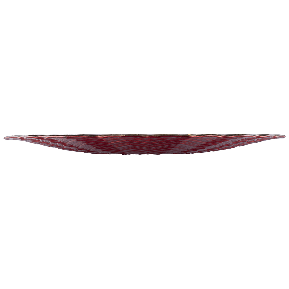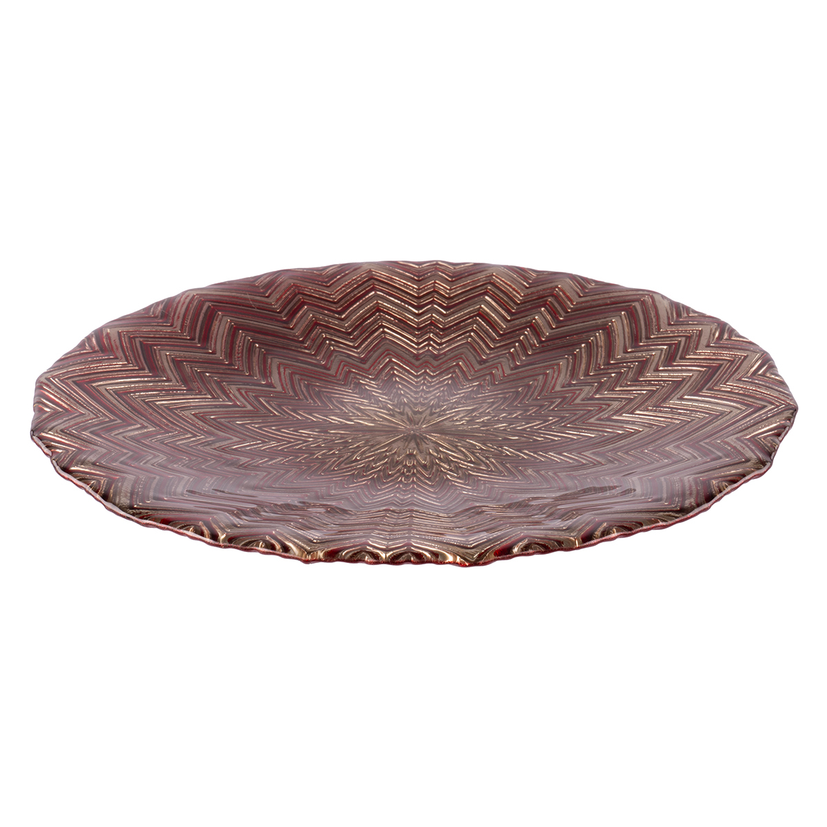 Тарелка сервировочная Gipfel Astrid 43218 22 см. Изготовлена из стекла ручной работы. Тарелка с абстрактным декором в оттенках золотого и брусничного цвета, придающим изделию 3D эффект.