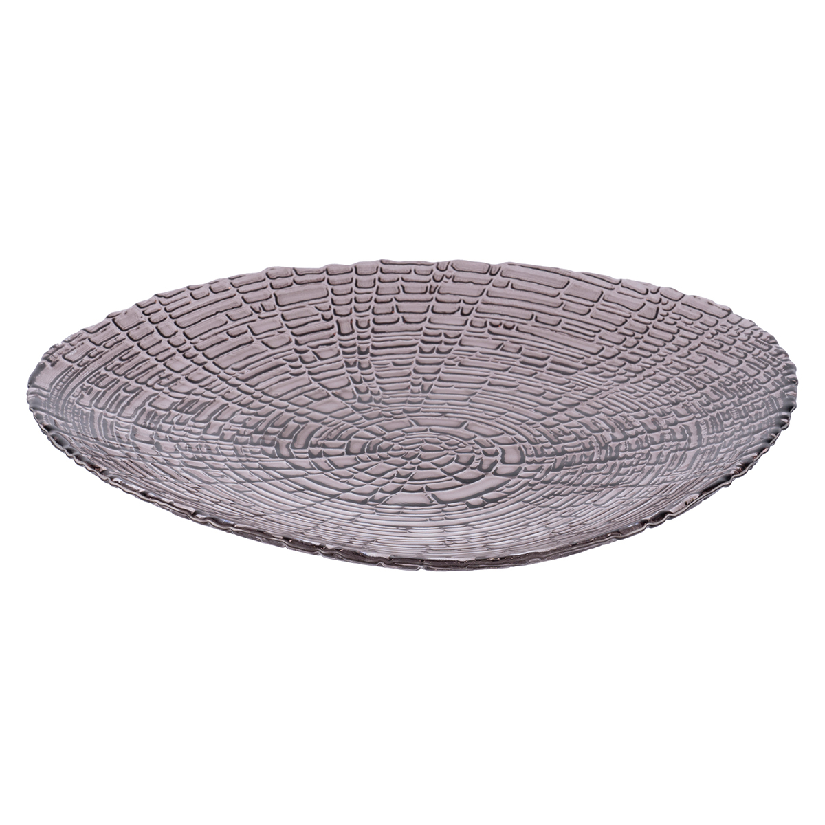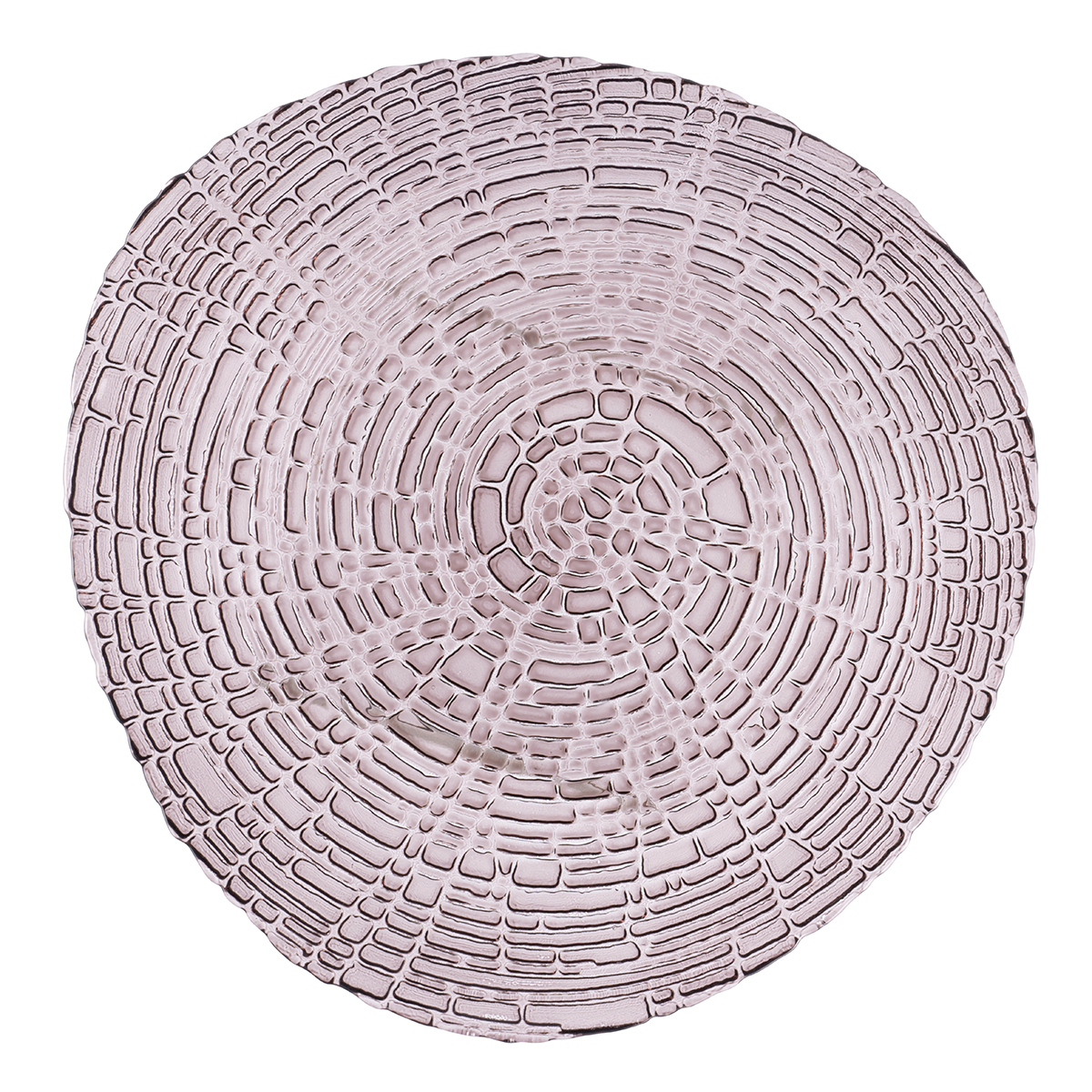 Тарелка выполнена с эффектом Кракле - имитацией потрескавшейся поверхности и лакированным покрытием в дымчато-розовом цвете.