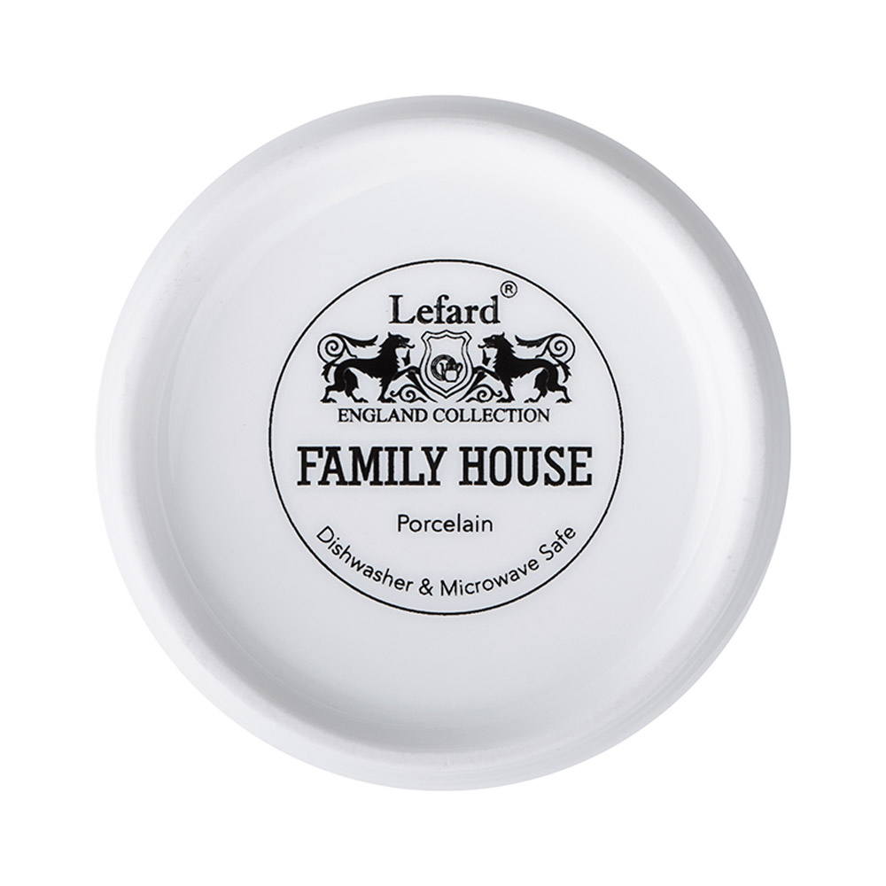 ТM Lefard эксклюзивная коллекция «FAMILY HOUSE» - качество и функциональность в оригинальном дизайнерском исполнении. Дом – это самое любимое место, лучше и дороже которого нет на свете, где в просторной гостиной найдется место провести вечер и пригласить гостей. Lefard предлагает широкий выбор предметов, позволяющих создать неповторимый интерьер, сервировать гостеприимный стол и превратить процесс приготовления блюд в удовольствие. Тарелки и блюда, кружки и чайные пары, чайники, сахарницы и банки легки в уходе и использовании. Оригинальная упаковка. Прекрасный подарок. Вся продукция сертифицирована и безопасна для контакта с пищевыми продуктами. Разрешено мыть в посудомоечной машине. Фарфоровую часть можно использовать в духовом шкафу, микроволновой печи.
