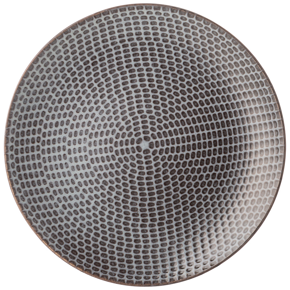 Коллекция ТМ BRONCO Graphite глубокого серого цвета с великолепным графическим подглазурным рисунком и стильной удобной формы оптимальных размеров. Все изделия выполнены из высокотемпературной каменной керамики и обожжены при температуре от 1100 до 1400 градусов. При такой температуре вода и воздух из глиняной массы полностью испаряются и изделия становятся легче, плотнее, крепче, приближаясь по своим характеристикам к фарфору. Современные рестораторы выбирают каменную керамику именно из-за её прочности и стойкости к перепадам температур. Поверхность изделий покрыта глянцевой реактивной глазурью. Изделия не впитывают вкусы и запахи продуктов, хорошо сохраняют тепло и холод. Они легки в уходе, вызывают приятные тактильные ощущения, длительное время сохраняют первоначальный внешний вид. Каменную керамику можно мыть в посудомоечной машине, использовать в микроволновой печи.