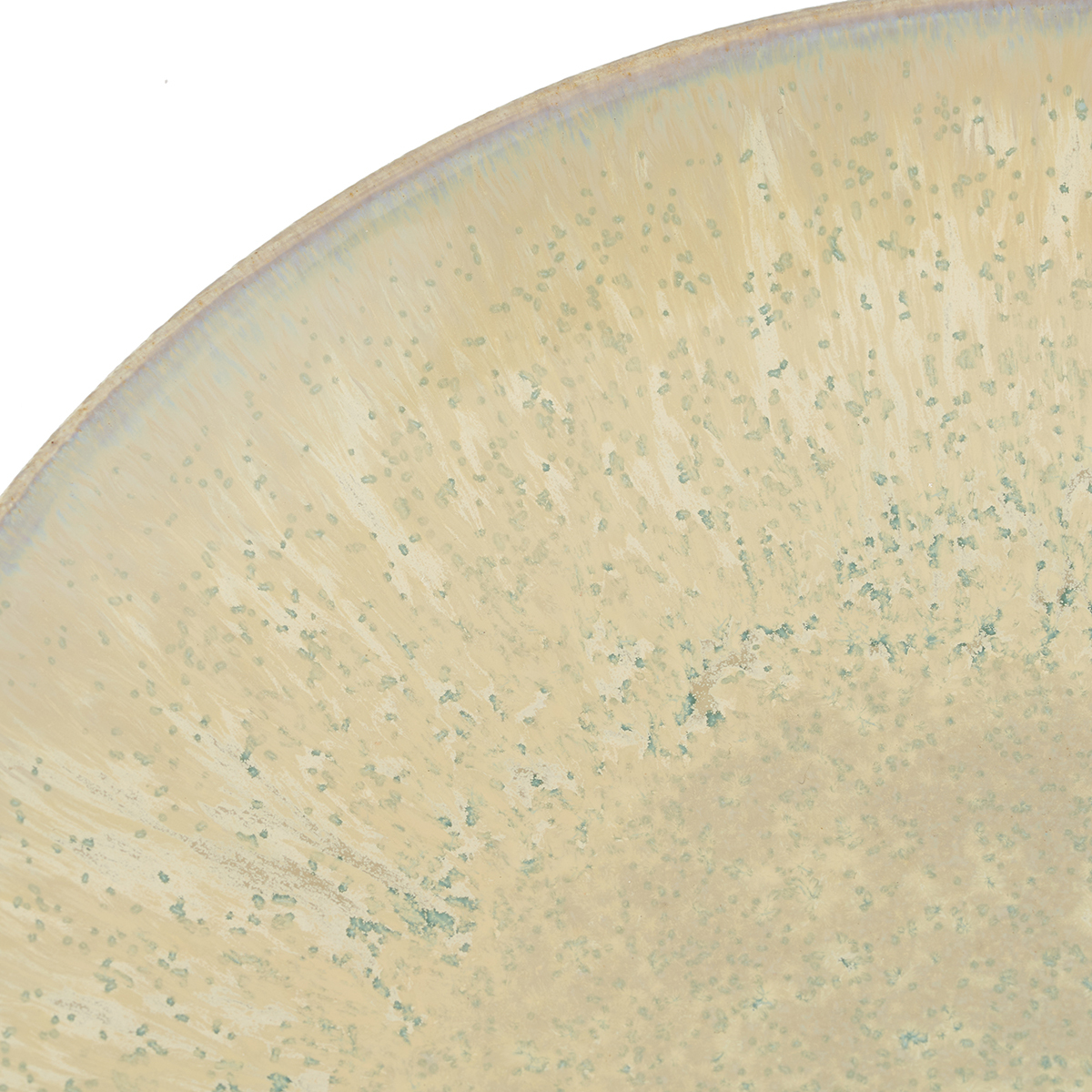 Тарелка выполнена в пастельных натуральных оттенках зеленого.