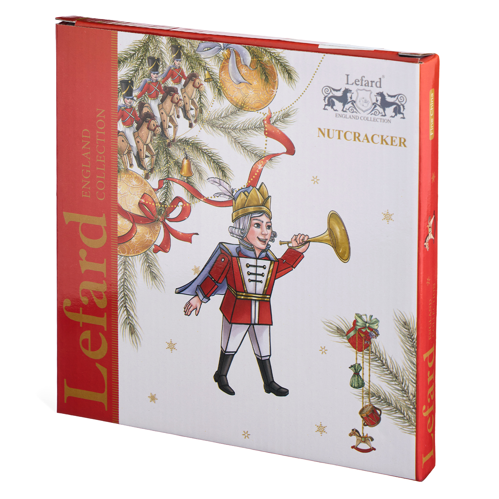 ТМ LEFARD эксклюзивная коллекция «Nutcracker» - Щелкунчик создана по мотивам одноименной истории, с которой знакомы все дети и взрослые. Волшебная история о новогоднем чуде идеально подходит для создания праздничного настроения. Широкий ассортимент тарелок, салатников, кружек, чайных пар поможет сервировать праздничный стол и создать сказочную атмосферу. Все изделия выполнены из качественного тонкого фарфора. Прямые современные формы, удобные объемы. Стильная, подарочная упаковка. Дарите сказку друзьям и близким людям! Можно использовать в СВЧ, не рекомендуется мыть в посудомоечных машинах во избежание повреждения золотой отводки (деколи) на изделиях.