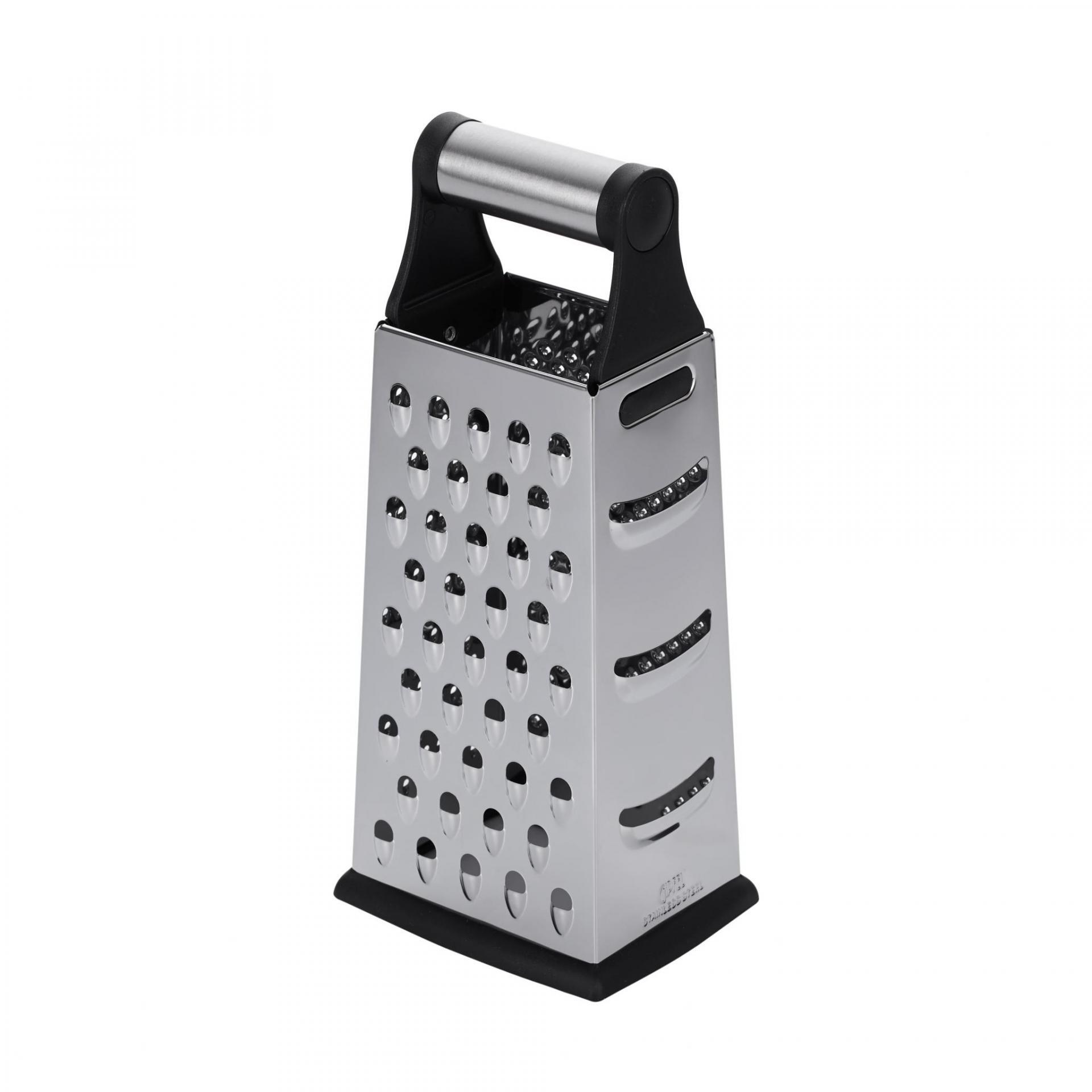 Терка GIPFEL GALEATA 50415 четырехсторонняя. Размер терки 23 см. Толщина стенок 0,25 мм. Четырехсторонняя терка выполнена из высокопрочной нержавеющей стали. Внизу противоскользящее основание. Терка подойдет для натирания овощей и фруктов как в крупную соломку, так и в пюре, также ее можно использовать для нарезания сыра.