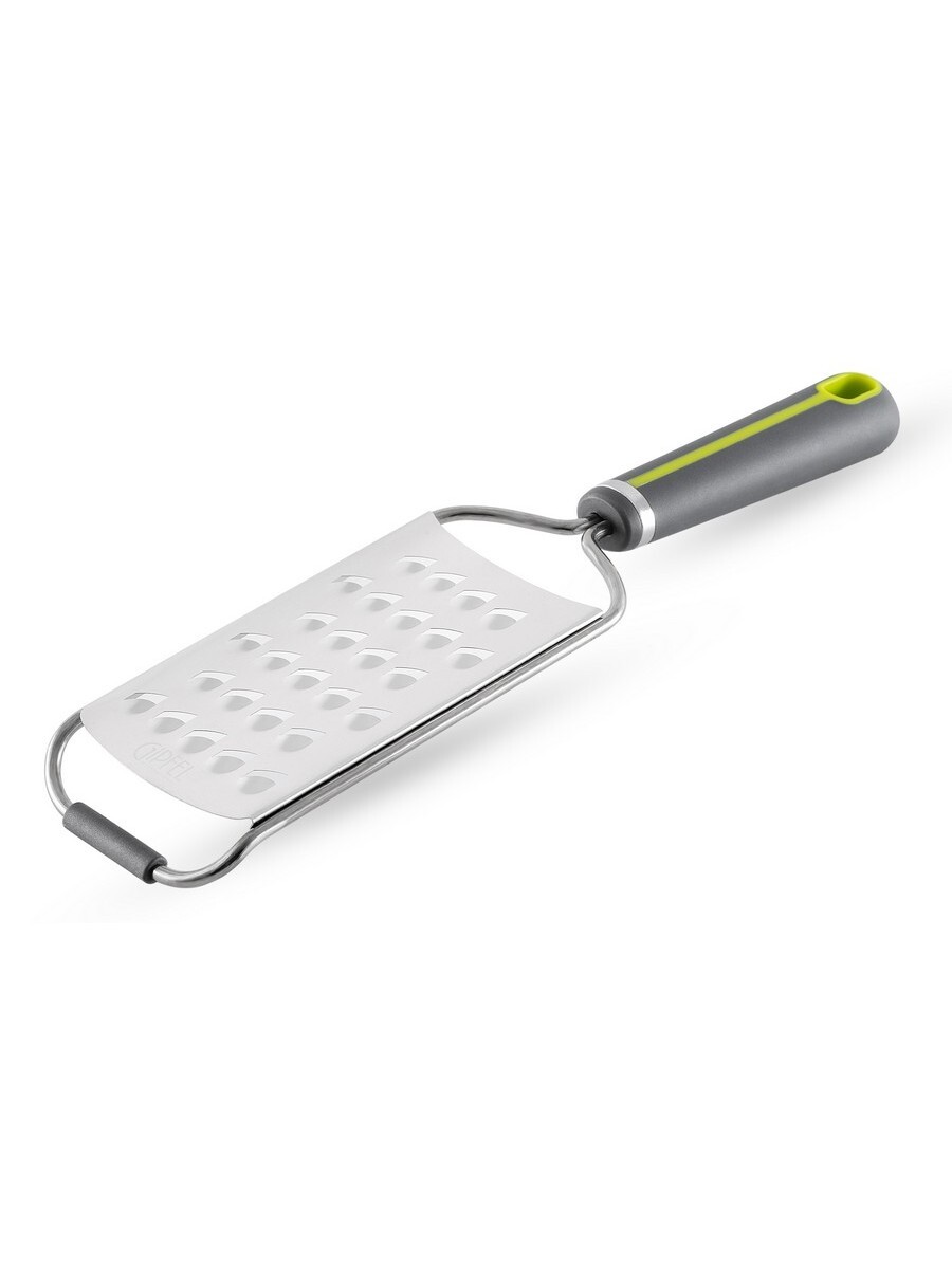 Терка GIPFEL ADONIS 6388 для крупной стружки. У терки удобная рукоятка с покрытием ''Soft-touch''. Ее удобно держать одной рукой, положив на емкость с продуктом, чтобы быстро сервировать блюдо. Ее можно использовать, чтобы натереть сыр для посыпки пиццы или духового мяса. На ней удобно тереть мягкие продукты, такие как вареные овощи, помидор для соуса. Терка сделана из нержавеющей стали, ручка пластиковая с элементами из термопластичной резины против скольжения. Толщина терки 0,25 мм. Размер терки 30х7,6 см.