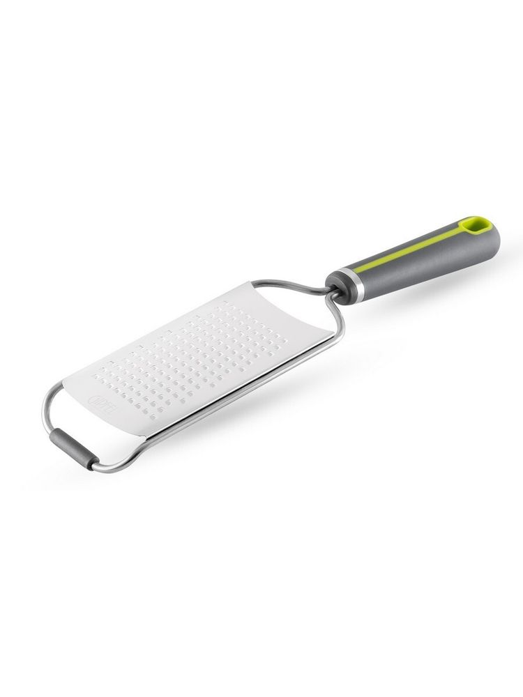 Терка для мелкой стружки Gipfel ADONIS 6389. У терки удобная рукоятка с покрытием ''Soft-touch''. Ее удобно держать одной рукой, положив на емкость с продуктом, чтобы быстро сервировать блюдо. Ее можно использовать, чтобы натереть цедру лимона в тесто, сыр в салат, ризотто, на пиццу или спагетти. Терка сделана из нержавеющей стали, ручка пластиковая с элементами из термопластичной резины против скольжения. Толщина терки 0,25 мм.