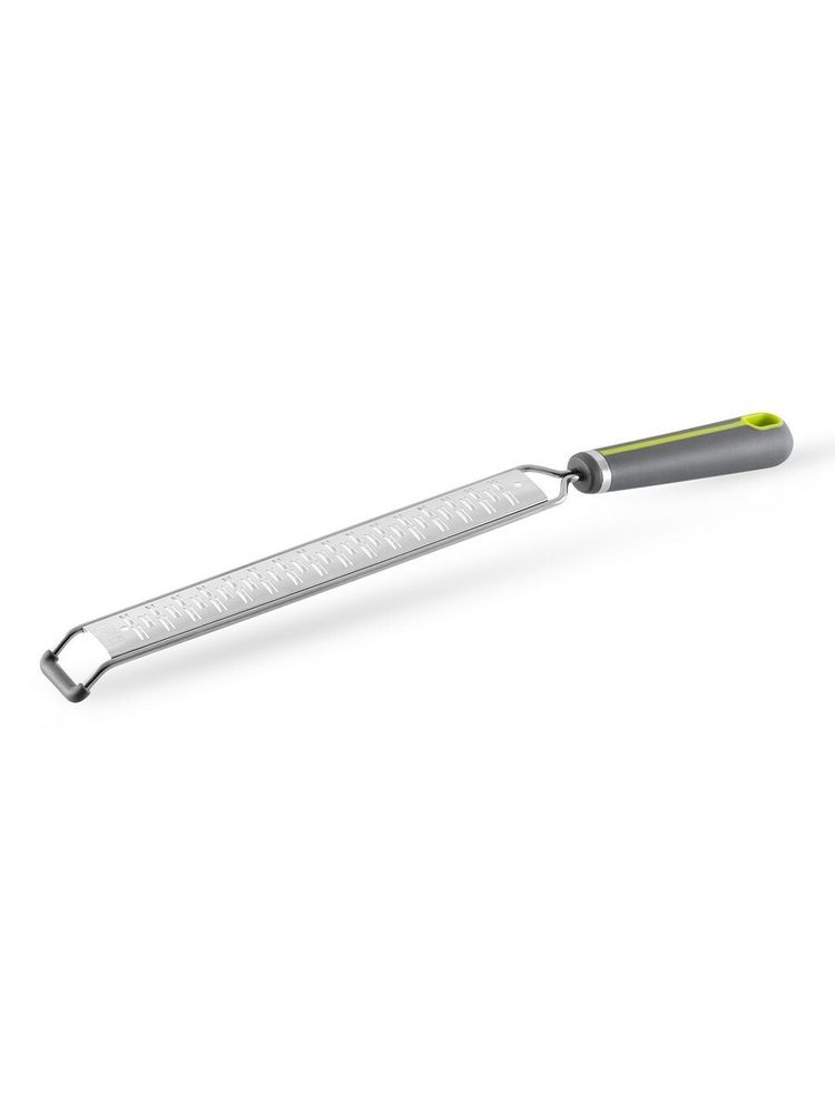 Терка ленточная GIPFEL ADONIS 6393 ленточная. У терки эргономичная рукоятка с покрытием ''Soft-touch''. Длина терки 38 см. Ее удобно держать одной рукой, положив на емкость с продуктом, чтобы быстро сервировать блюдо. Терку можно использовать, чтобы натереть цедру лимона, сыр, шоколад. Терка сделана из нержавеющей стали, ручка пластиковая с элементами из термопластичной резины против скольжения. Толщина терки 0,25 мм.