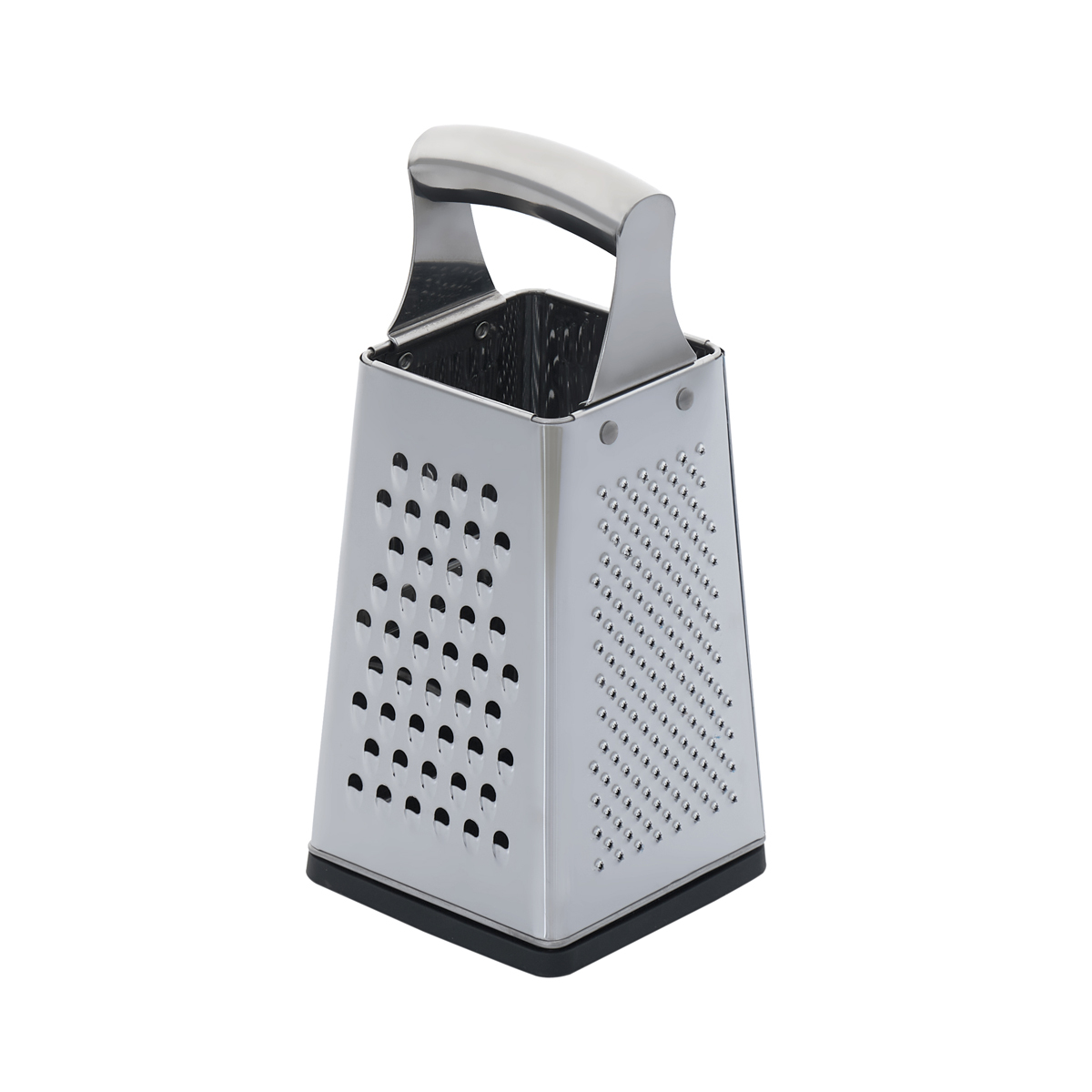 Терка Gipfel GEFEST 9804 четырехсторонняя. Размер терки 23,7x10,9x10,9 см. Толщина стенок 0,35 мм. Четырехсторонняя терка выполнена из высокопрочной нержавеющей стали. Внизу противоскользящее основание. Терка подойдет для натирания овощей и фруктов как в крупную соломку, так и в пюре, также ее можно использовать для нарезания сыра.