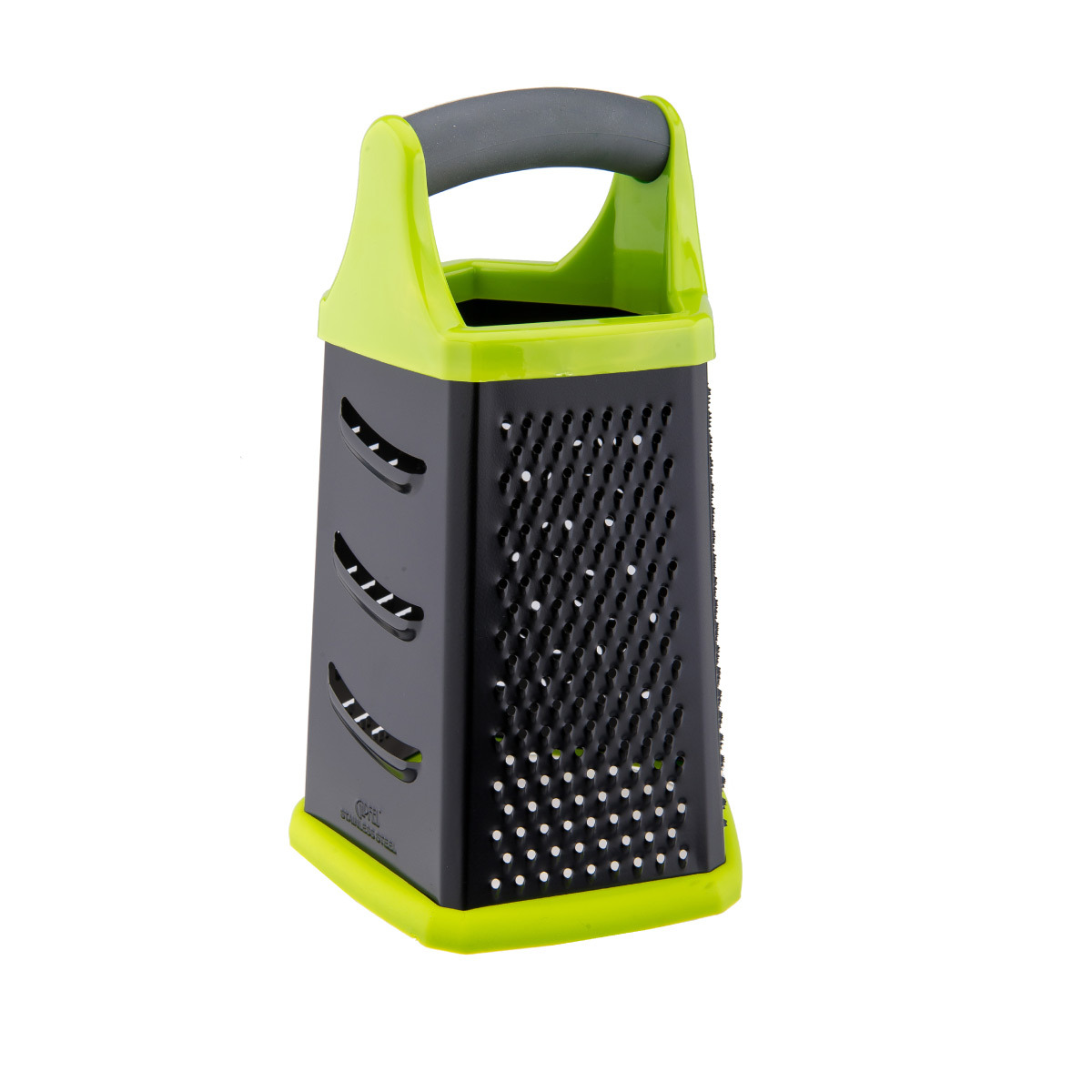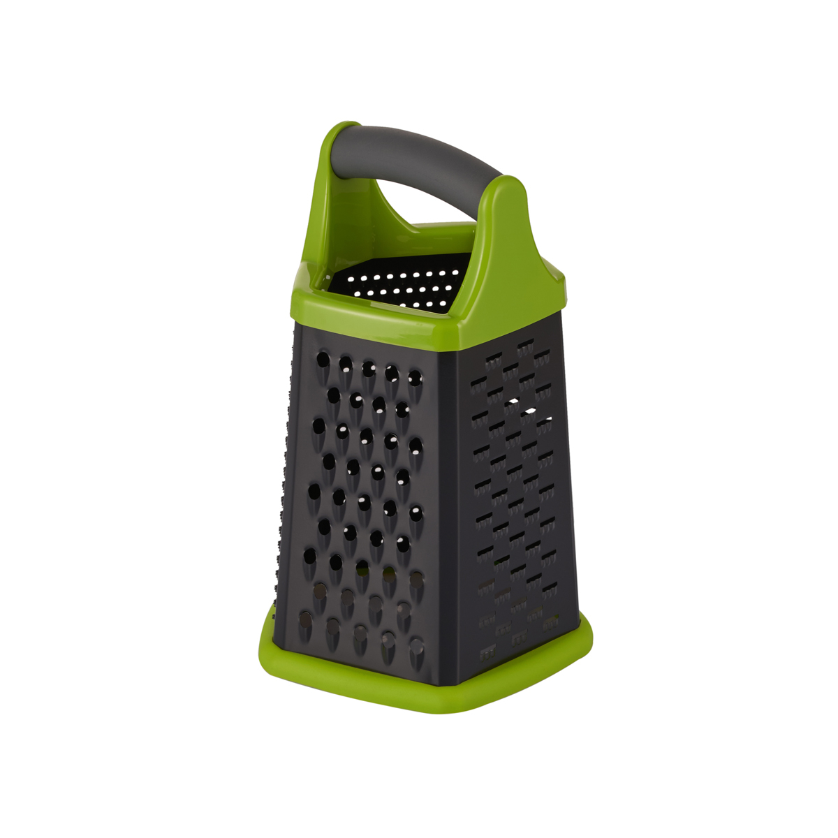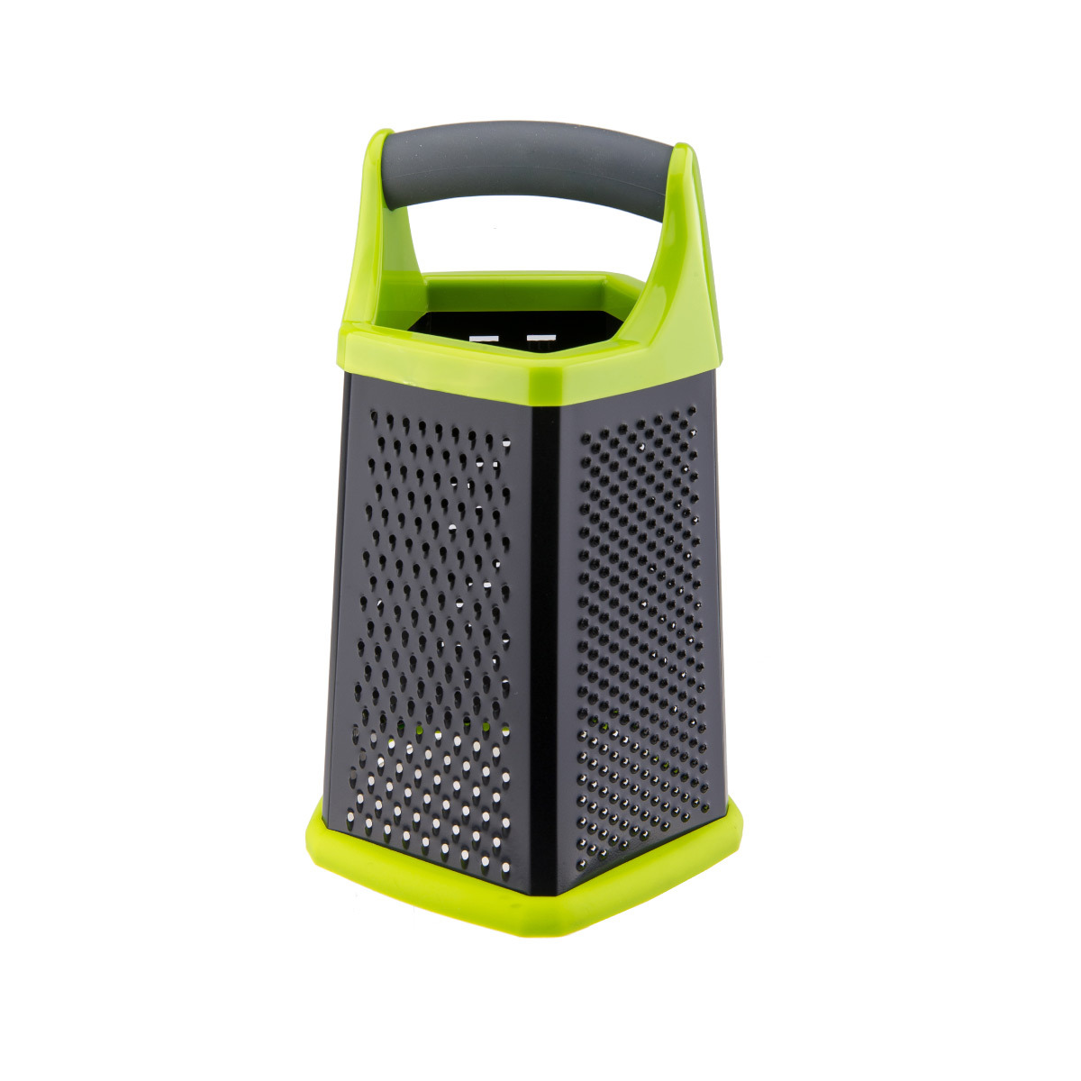Терка Gipfel Hercules 9806 пятисторонняя. Размер 22,5х14х14 см. У ручки покрытие "Soft-touch". Лезвия с покрытием, предотвращающим налипание пищи. Противоскользящая накладка у основания терки. Материал: пластик, нерж. сталь, термопластичная резина.