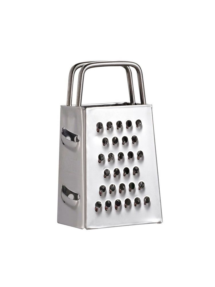 Терка Gipfel MINIMI 9842. Терка четырехсторонняя, с крупными и мелкими зубьями, а также с ножами для нарезания продуктов слайсами для чипсов и запеканок. Терка имеет компактный размер, всего 7,5 см, что создает удобство при хранении. Сделана из нержавеющей стали. Толщина: 0,25 мм.
