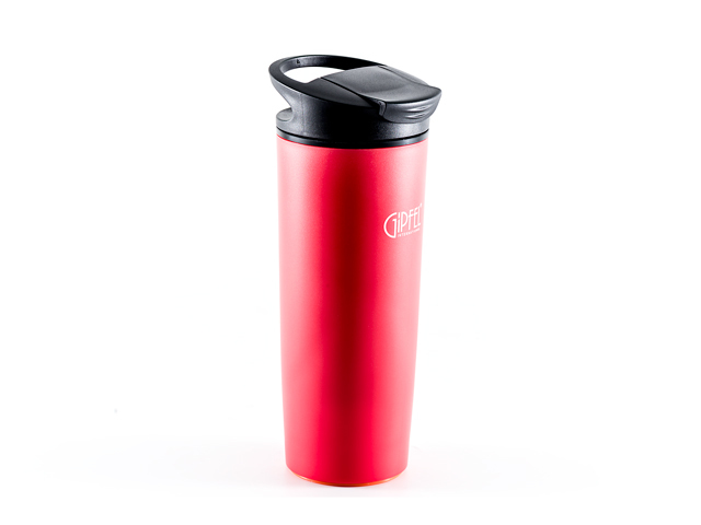 Кружка дорожная Gipfel 7810. Размер 8,22х9,27х23 см. Объем 450 м л. Кружка красного цвета с черной крышкой. Материал: PP, ABS. У кружки двойные стенки. Пластиковая крышка имеет защиту от брызг. Кружка упакована в фирменную красочную коробку.